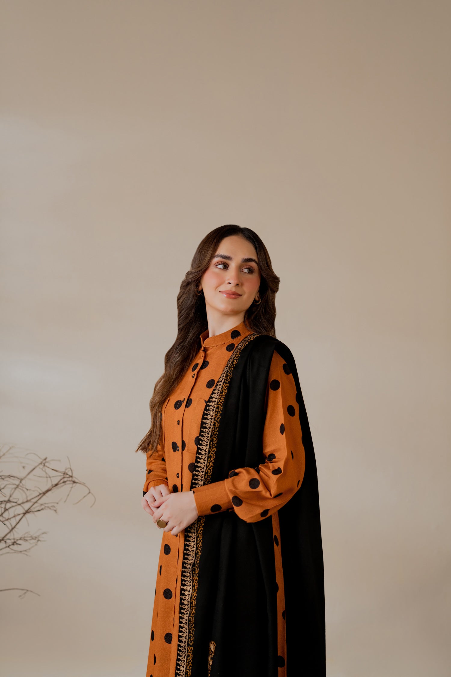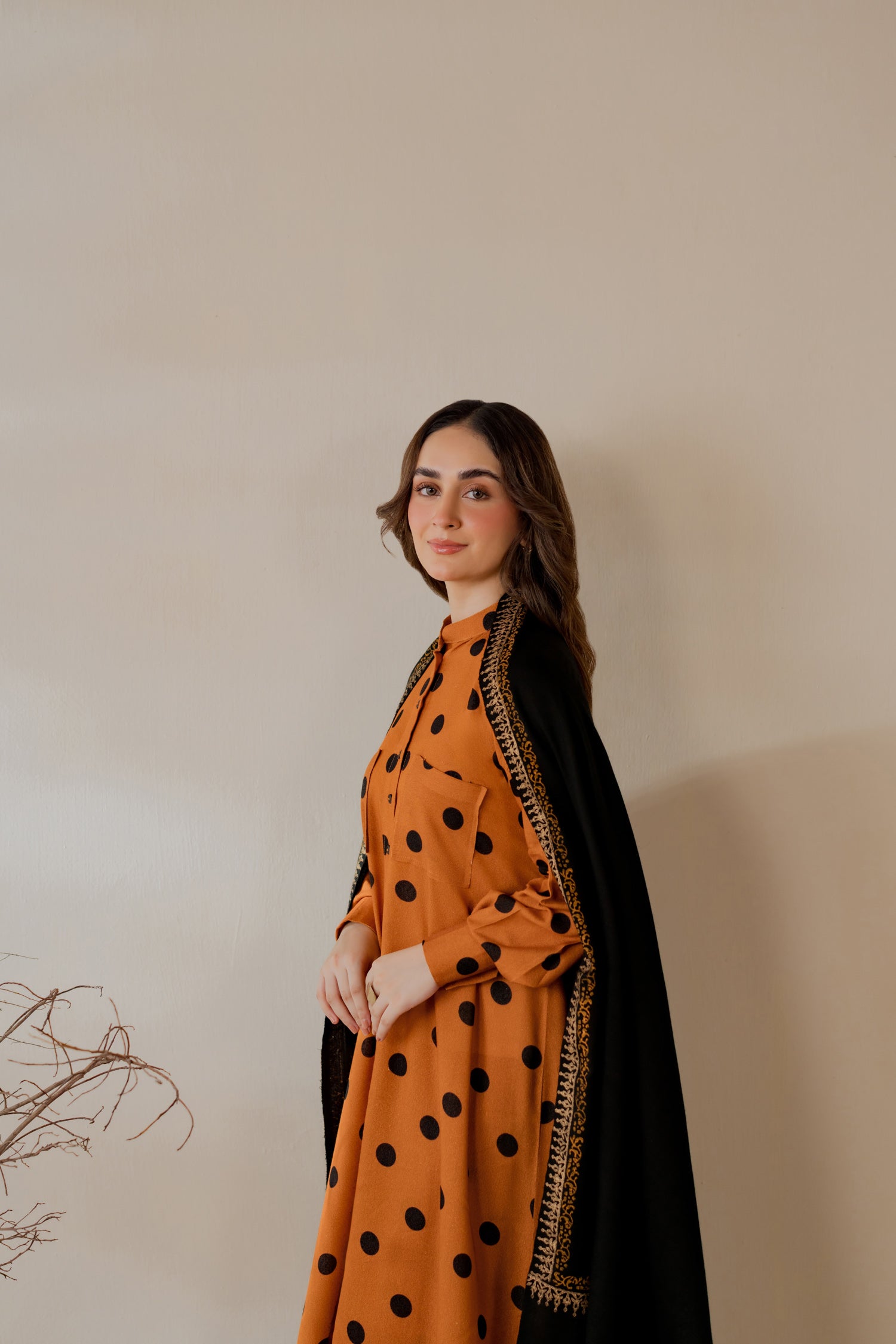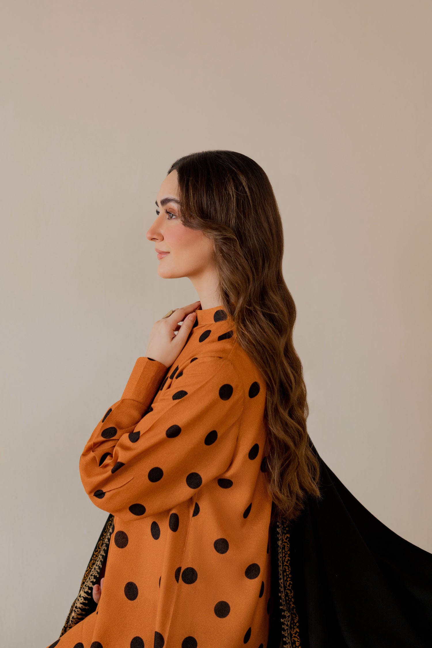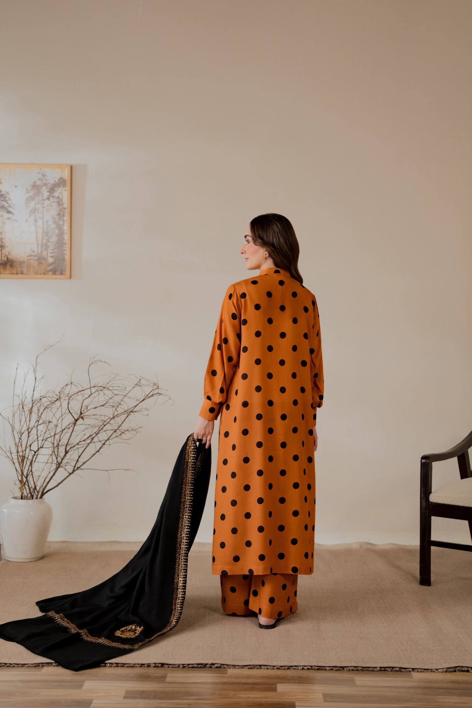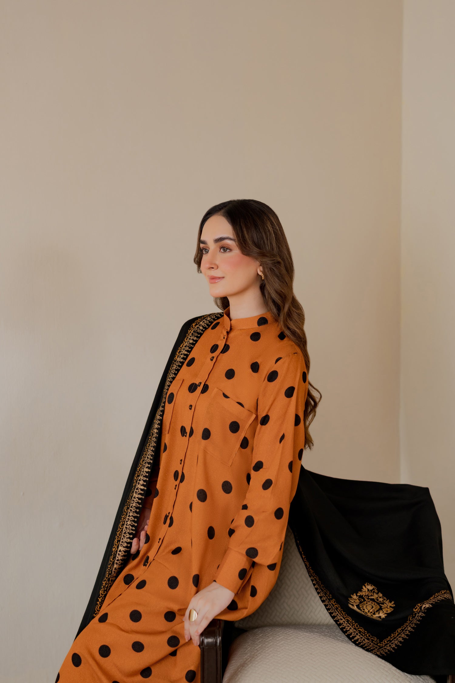 Karandi polka-dot printed kurta in deep mustard.