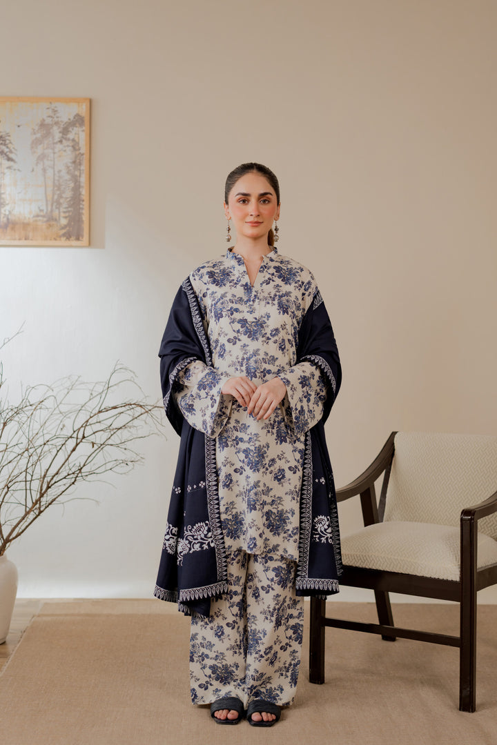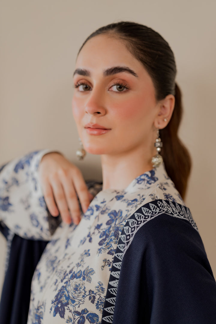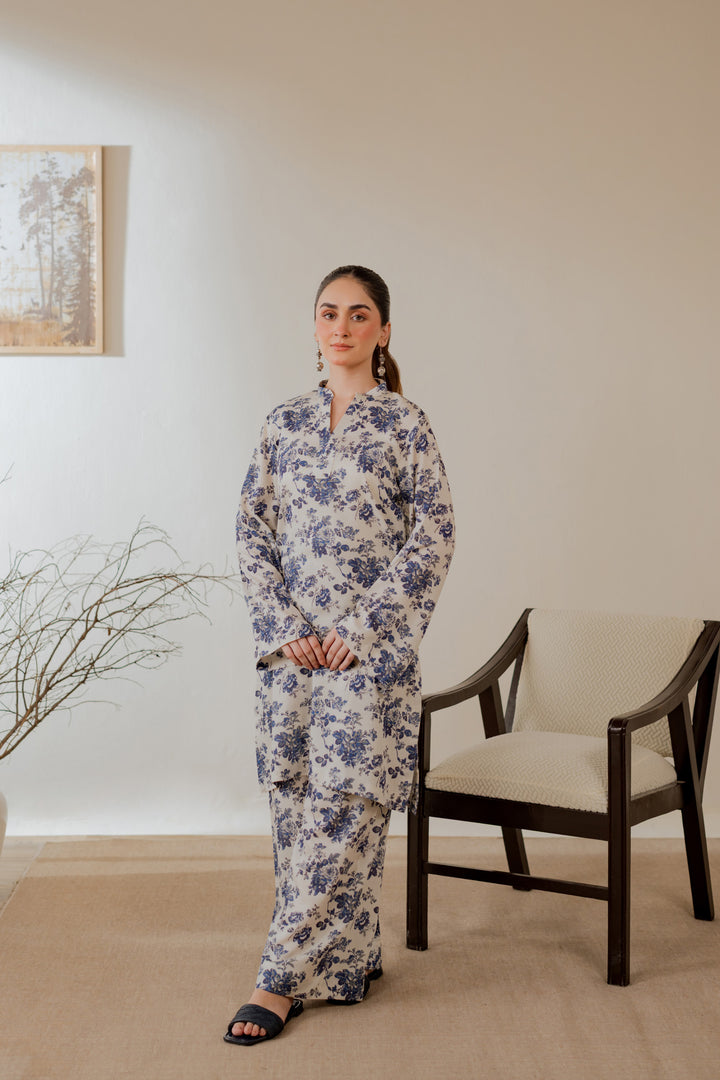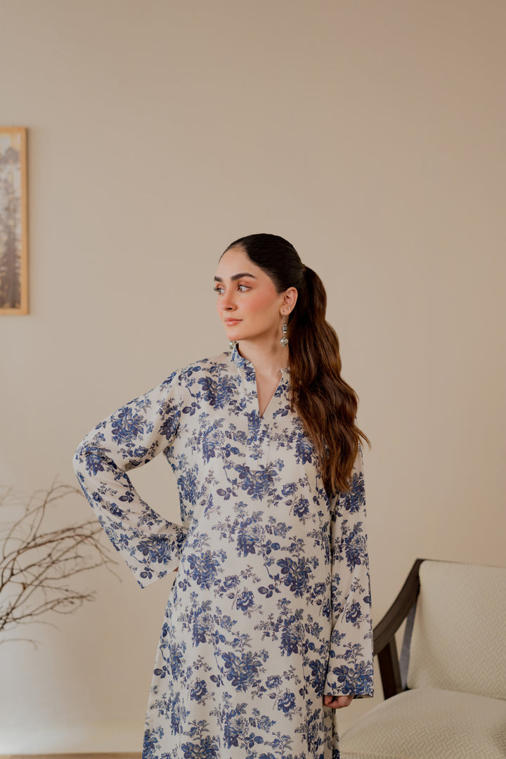 Karandi printed kurta in a blue floral design.