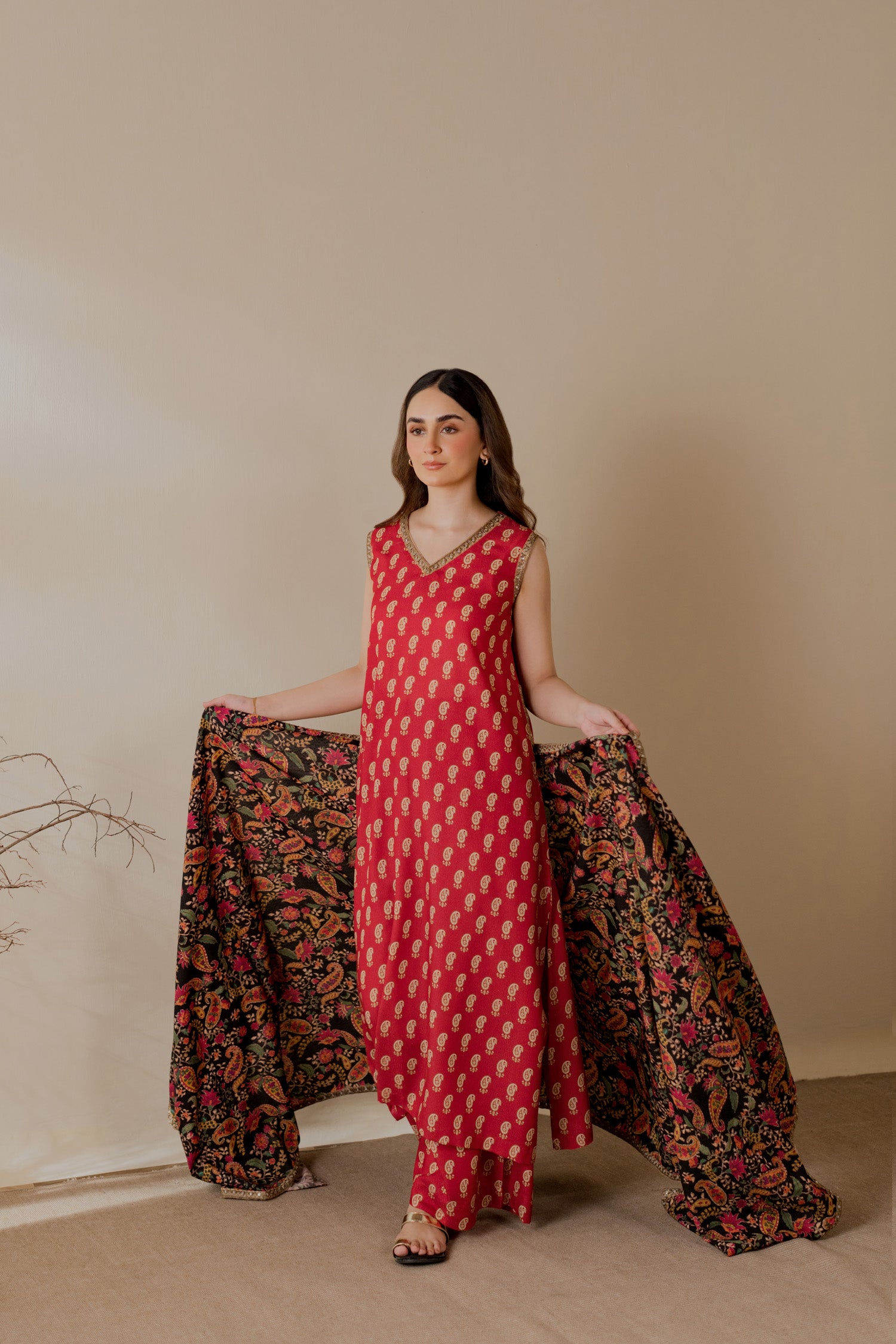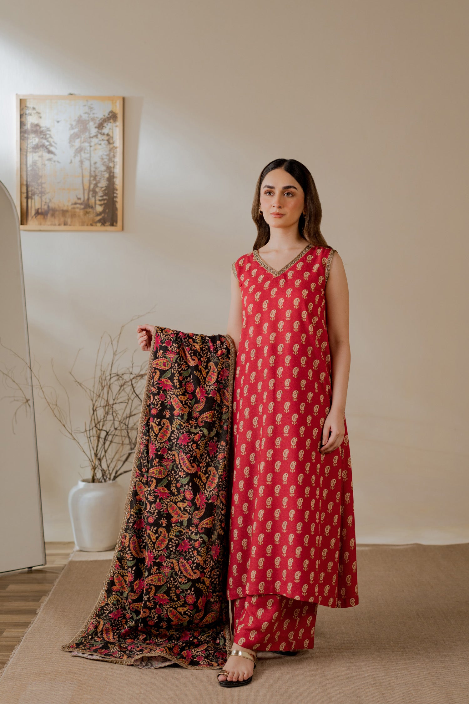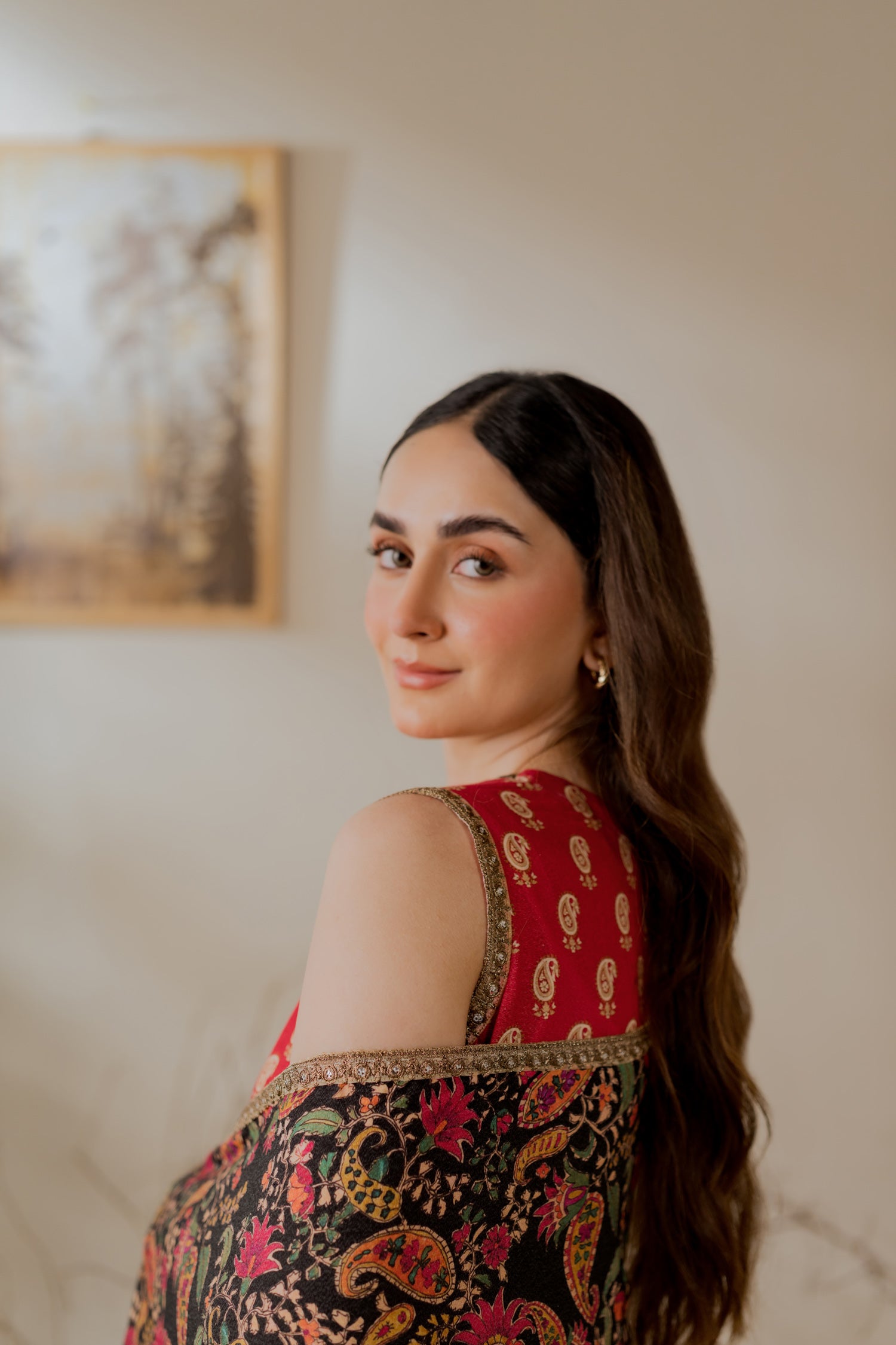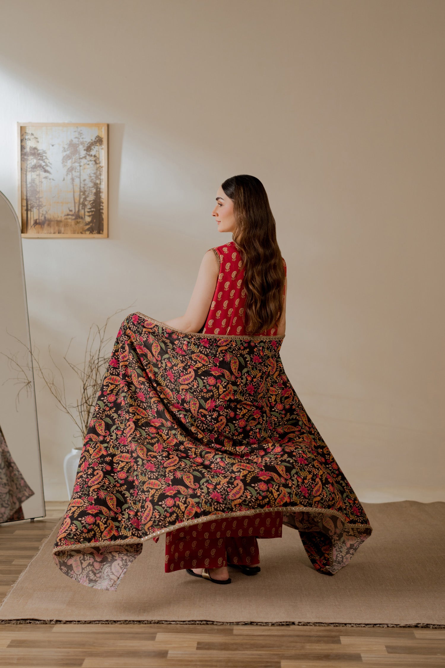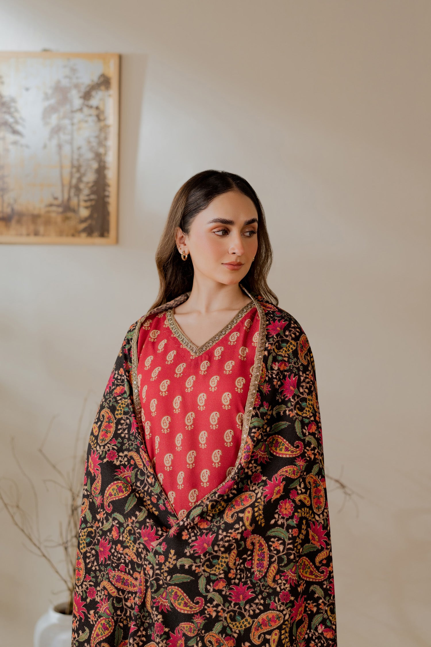 Karandi shawl with a delicate embroidered border for a refined touch.