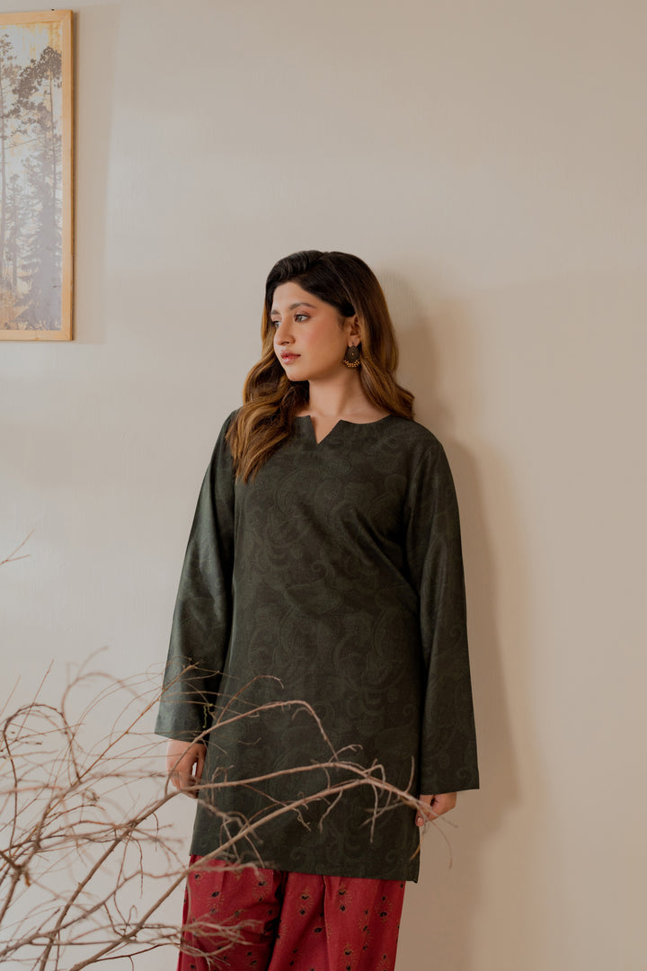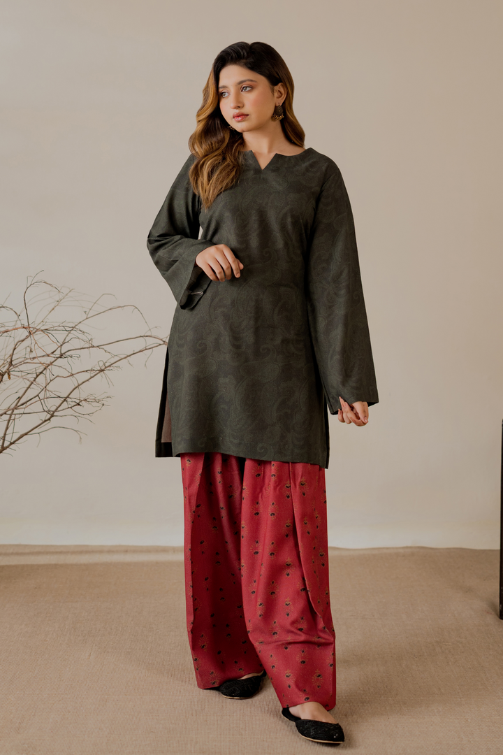 Karandi printed two-piece suit.