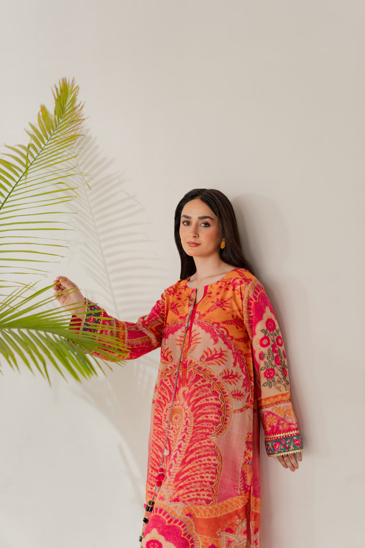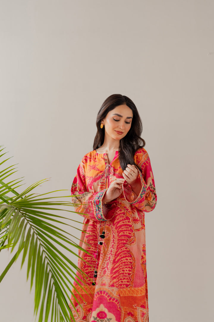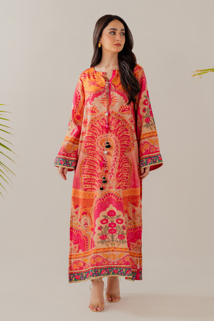 Shirt: Printed viscose embellished with a tassel and gota (length 50 inches),