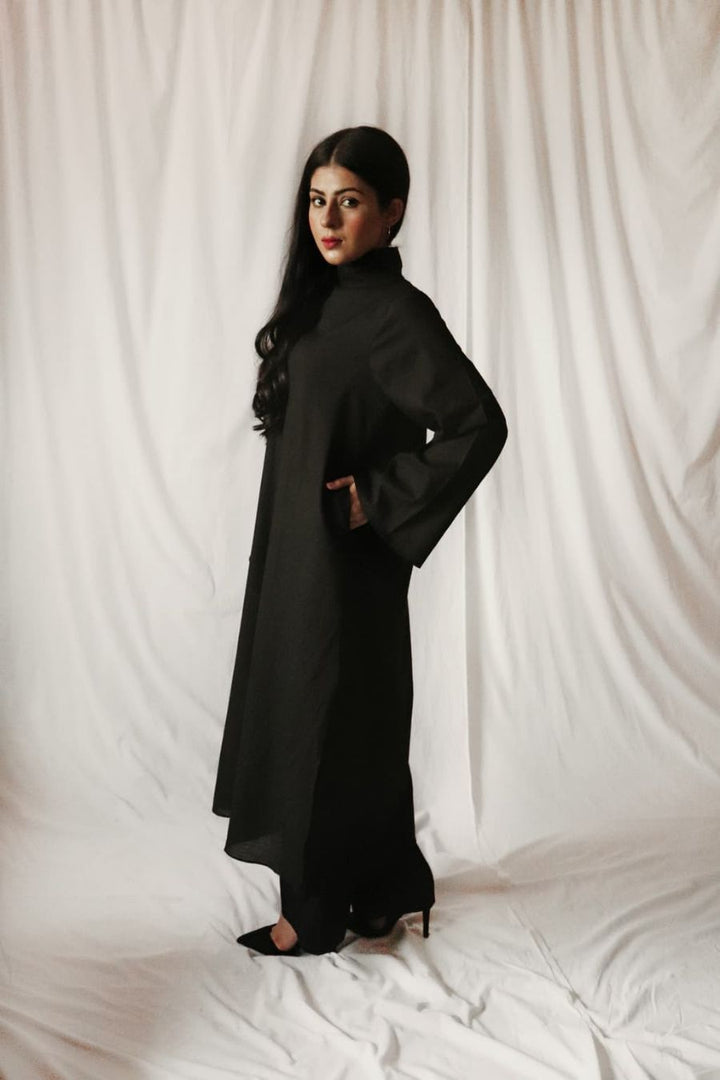 A modern silhouette, turtleneck & side pockets for everyday ease.
