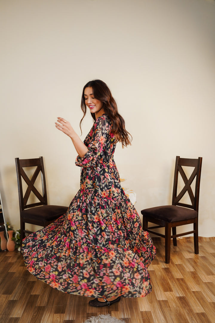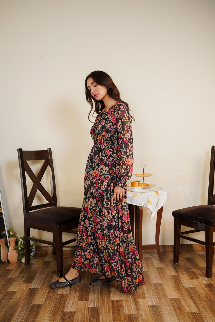 Printed maxi dress with attached lining.