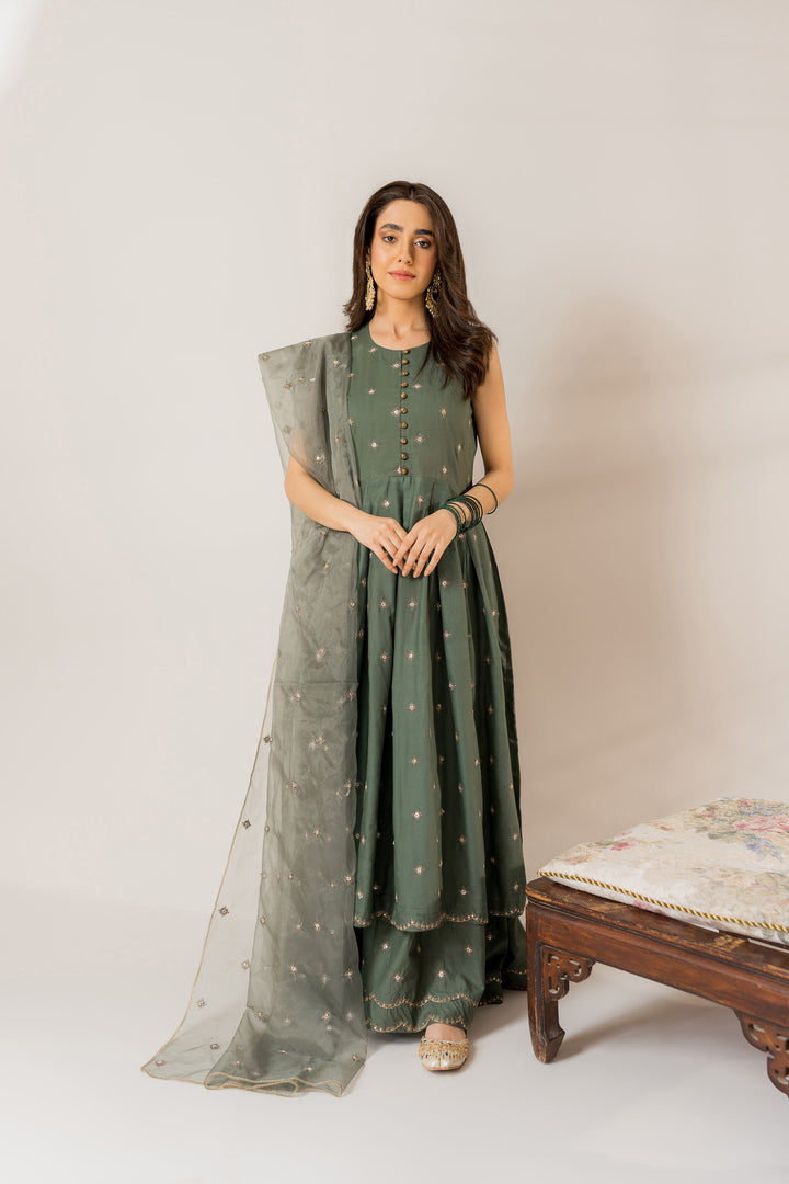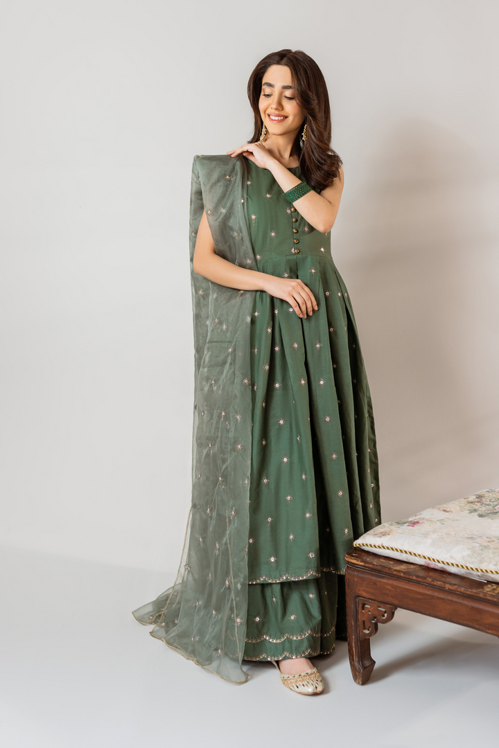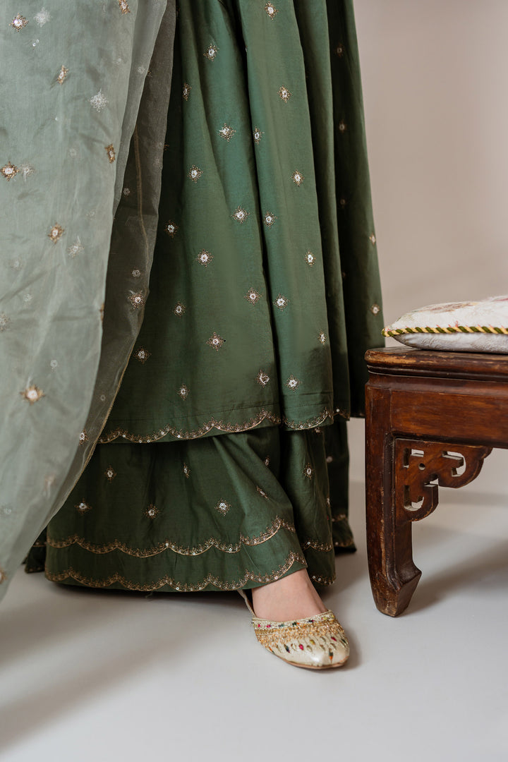 Gharara: Embroidered lawn-cotton