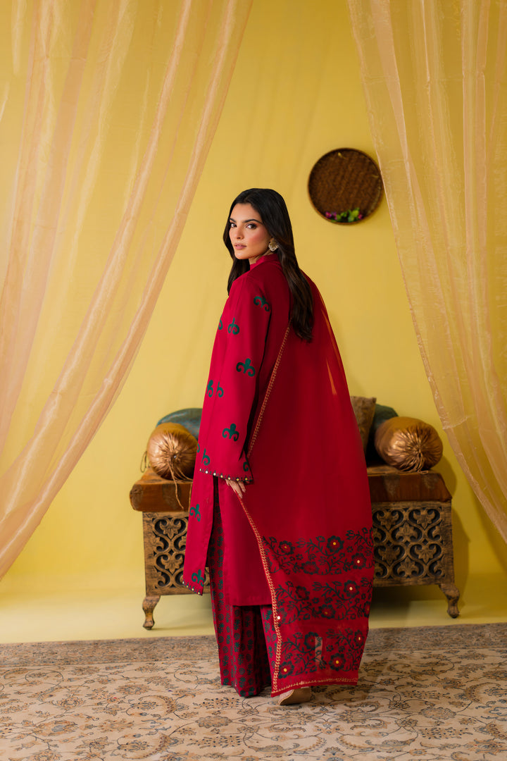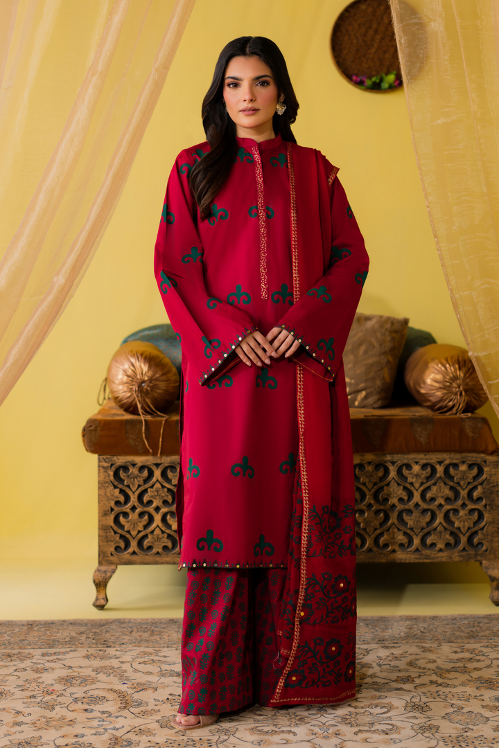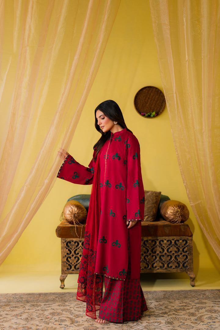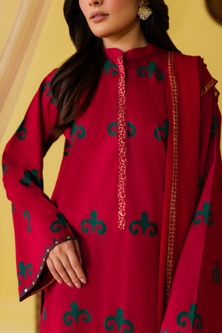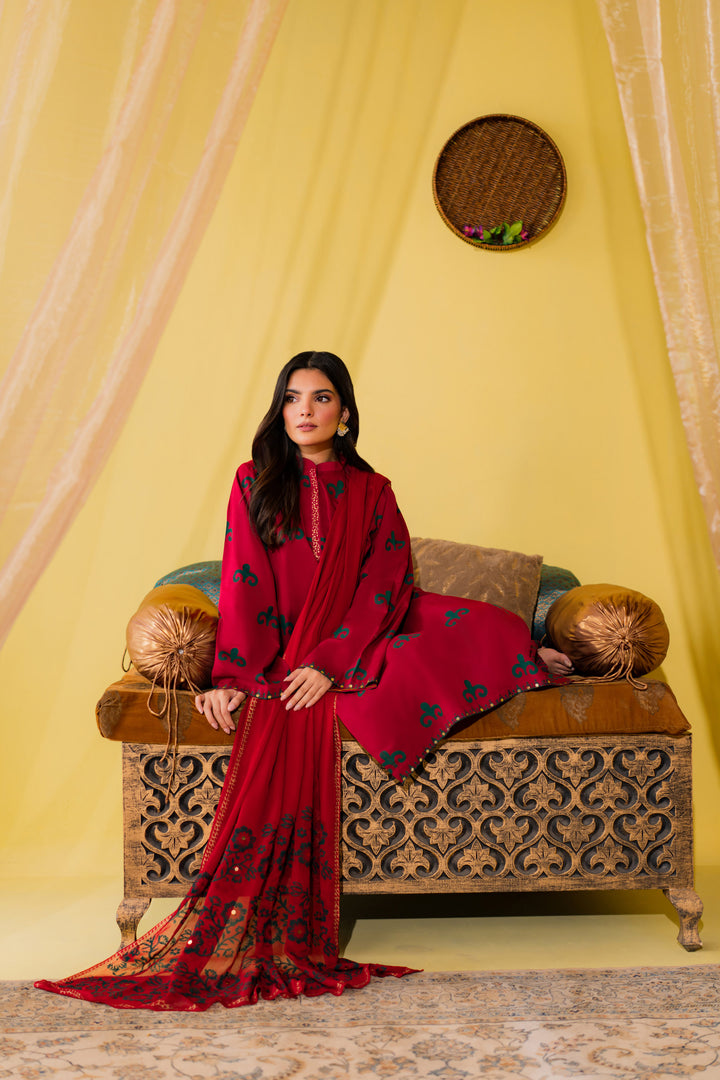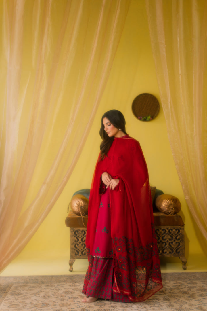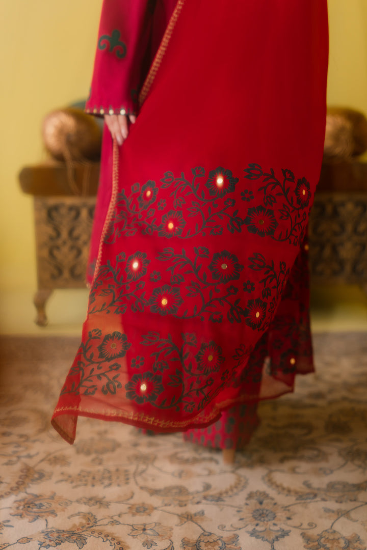 Dupatta: Hand block printed chiffon dupatta with sequins