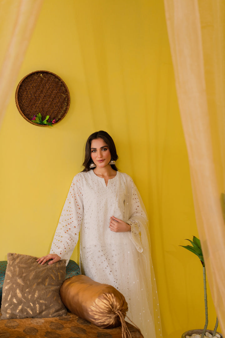 Shirt: Cotton schiffli shirt
