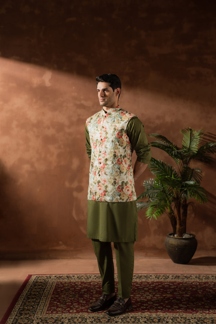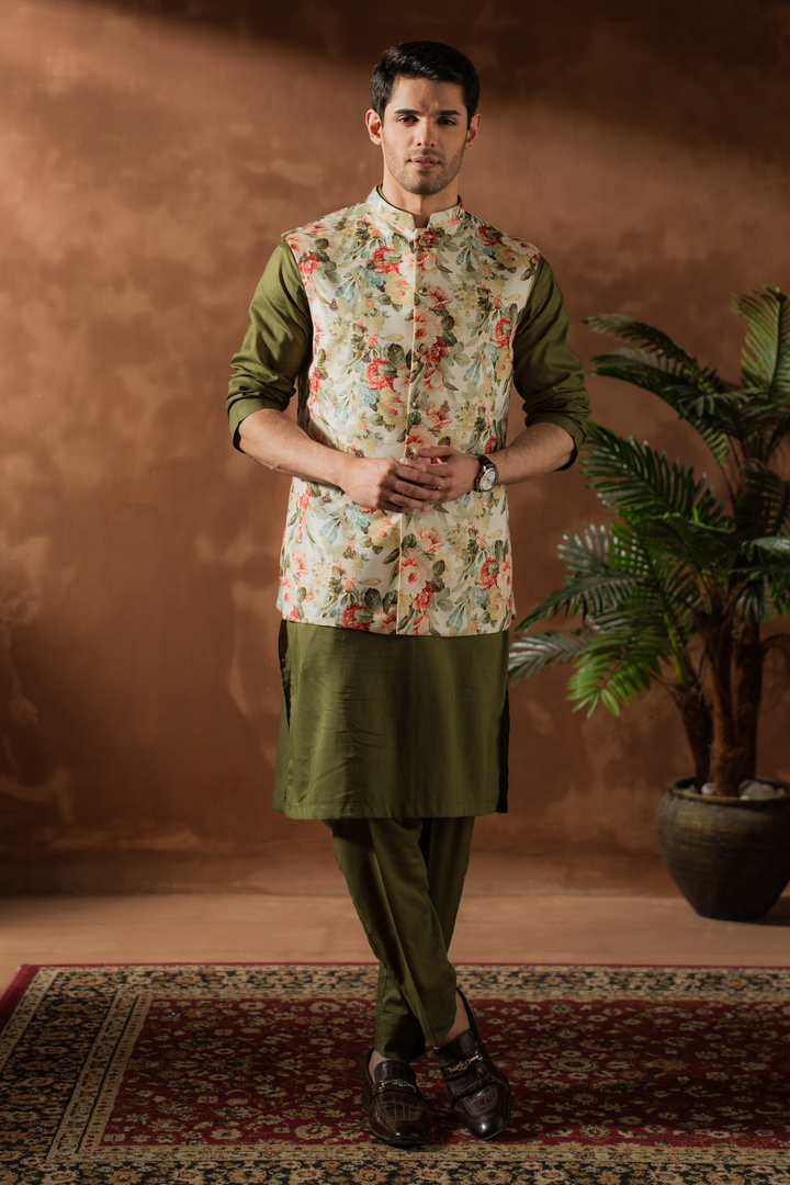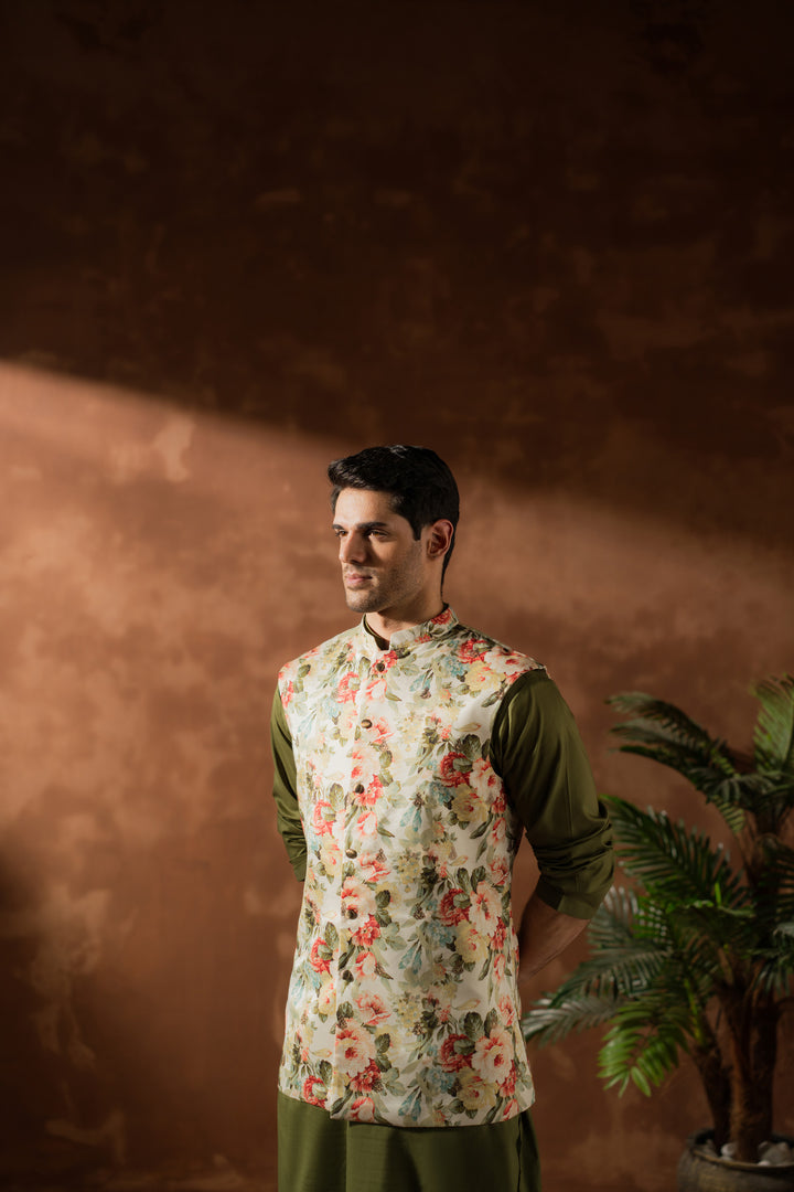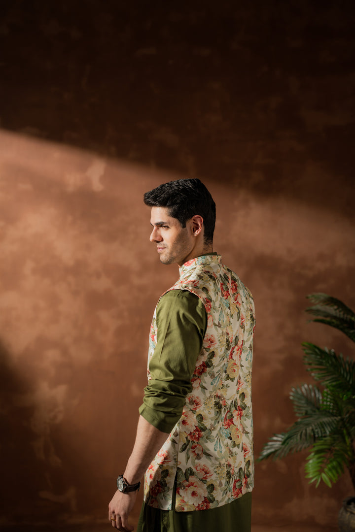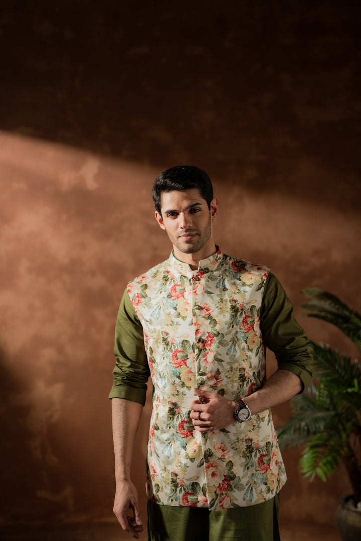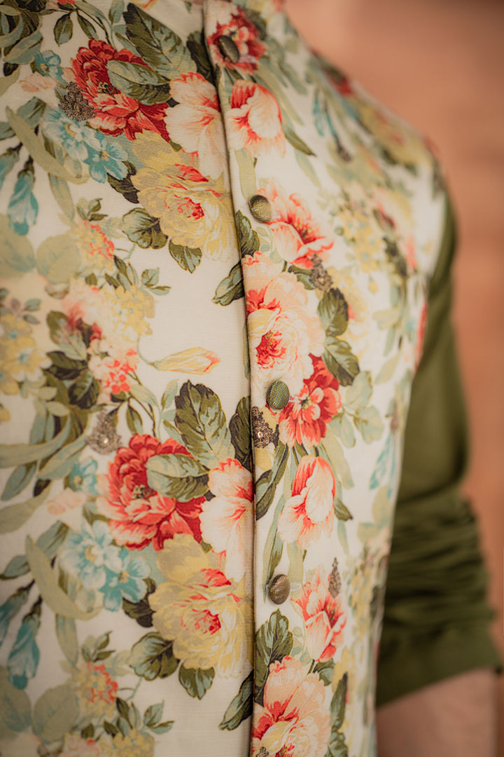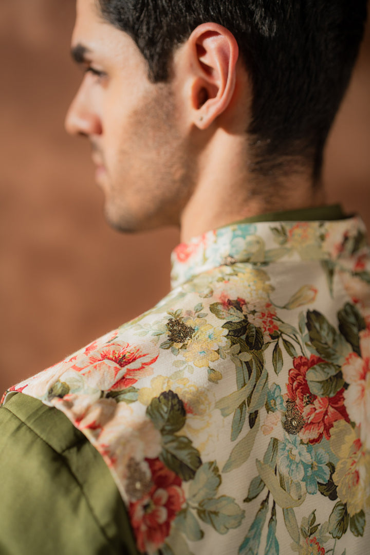 Waistcoat: Printed/embroidered cotton silk.