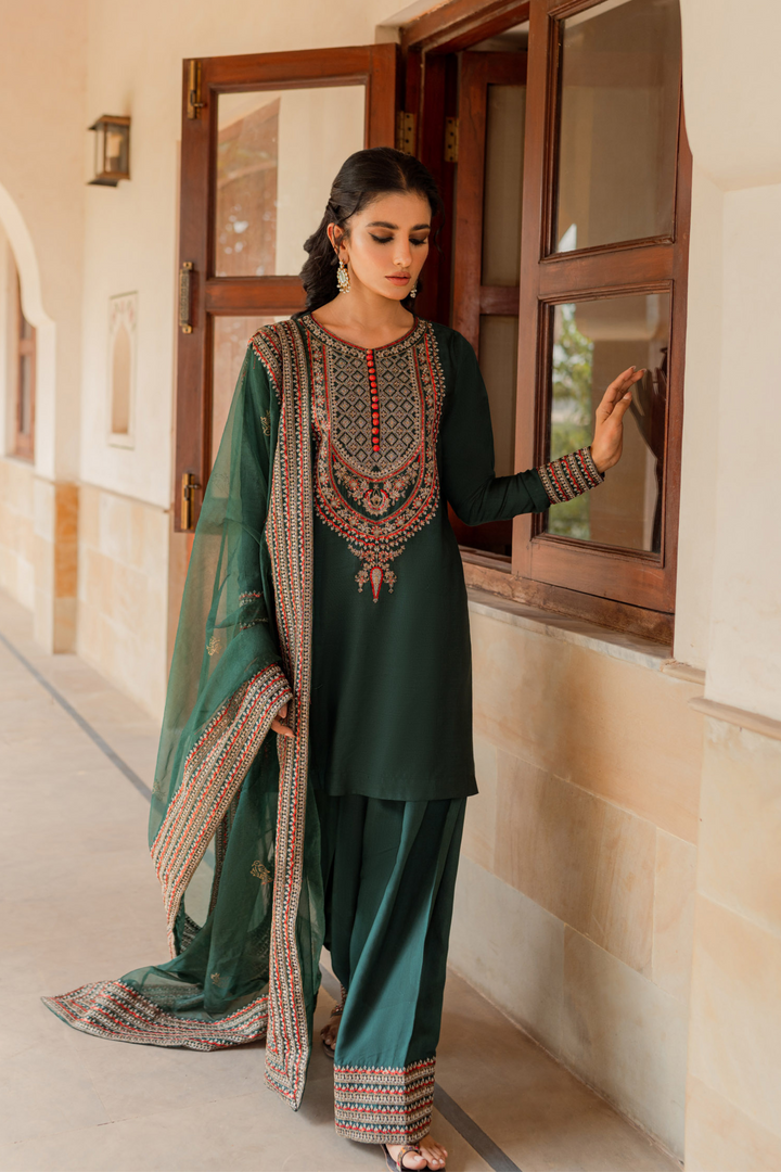 Shirt: Embroidered viscose (short straight fit shirt - length 34 inches)