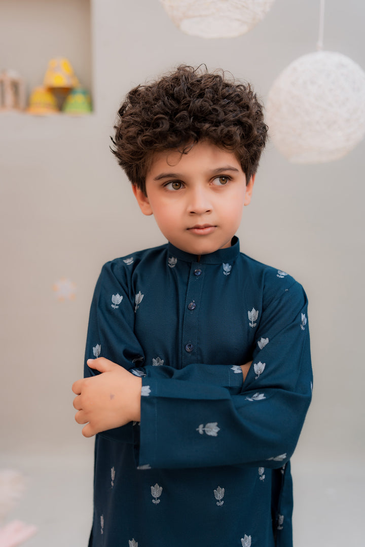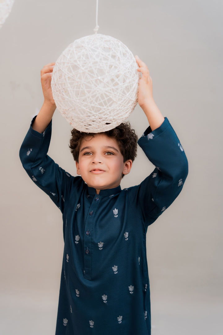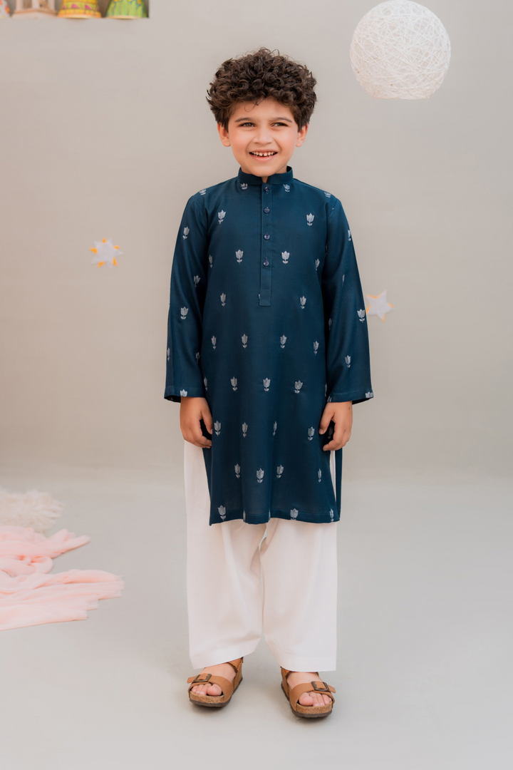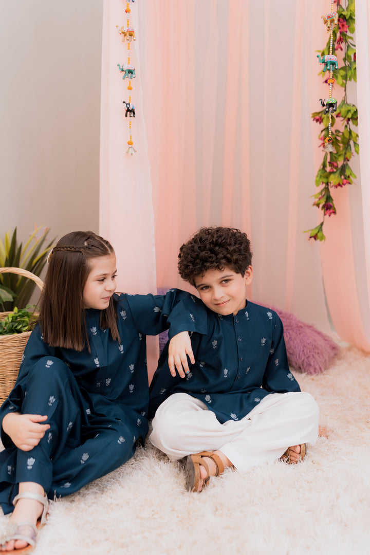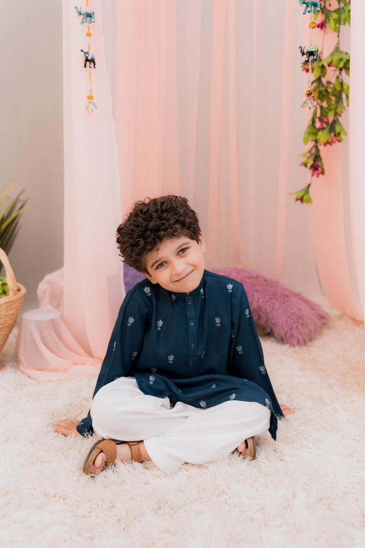 Embroidered kurta paired with a white shalwar