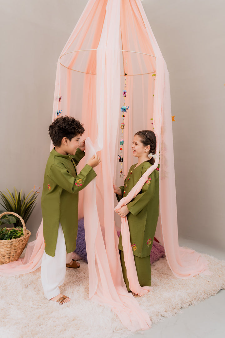 Model is wearing 7-8 years size. Please refer to the size chart in the images section for measurements.