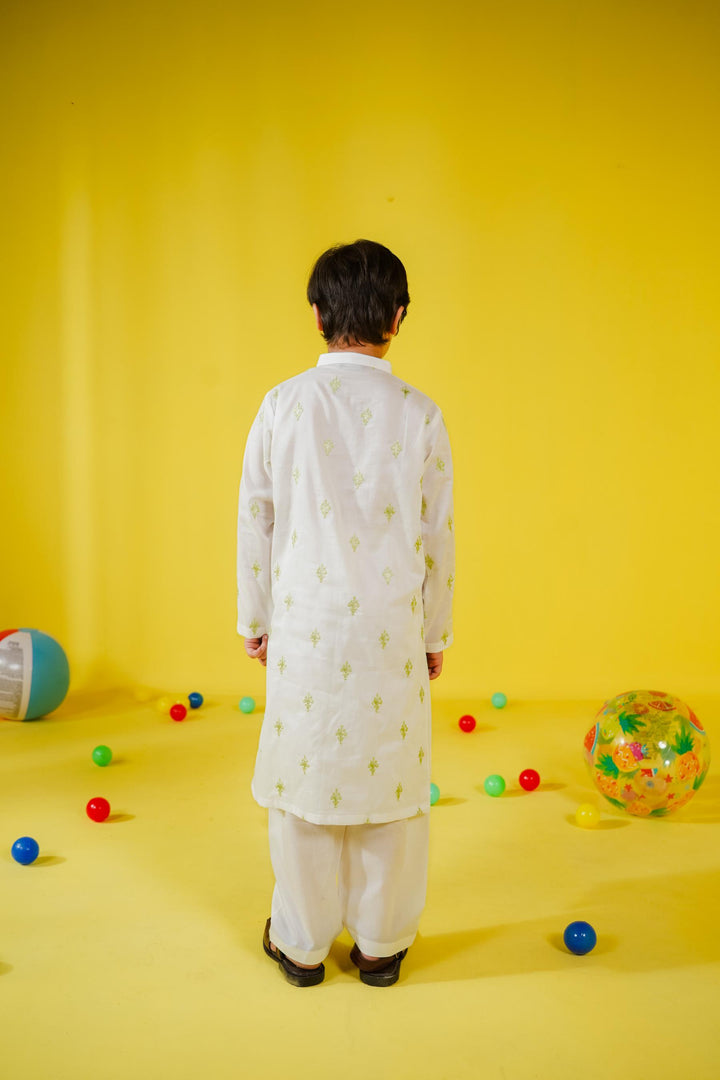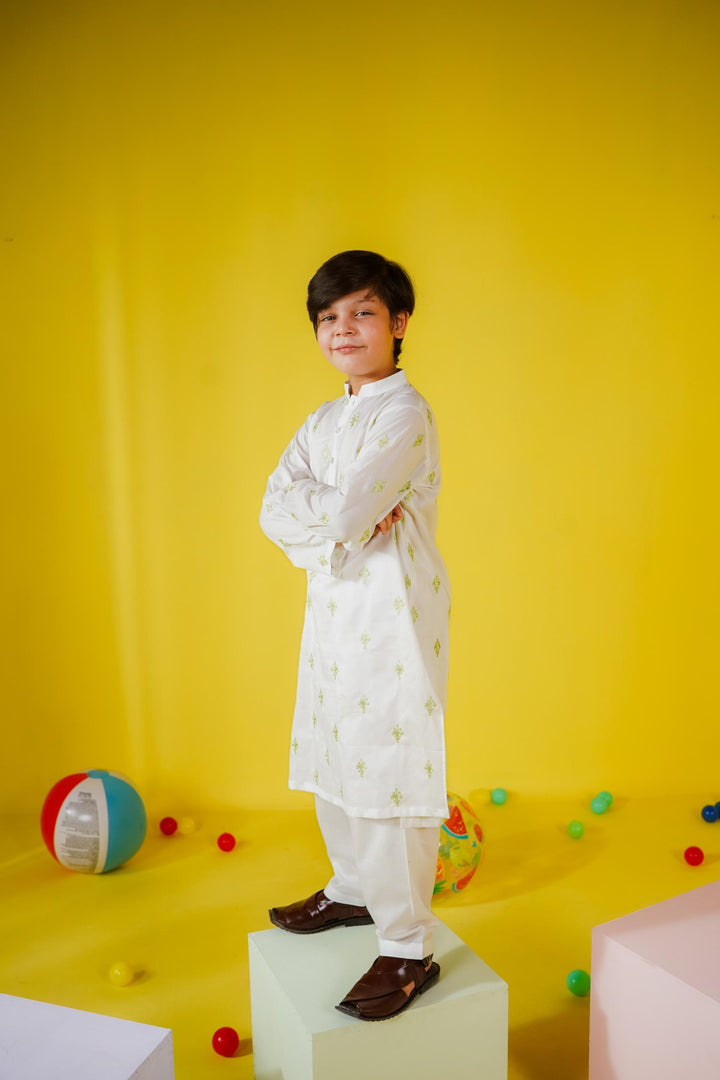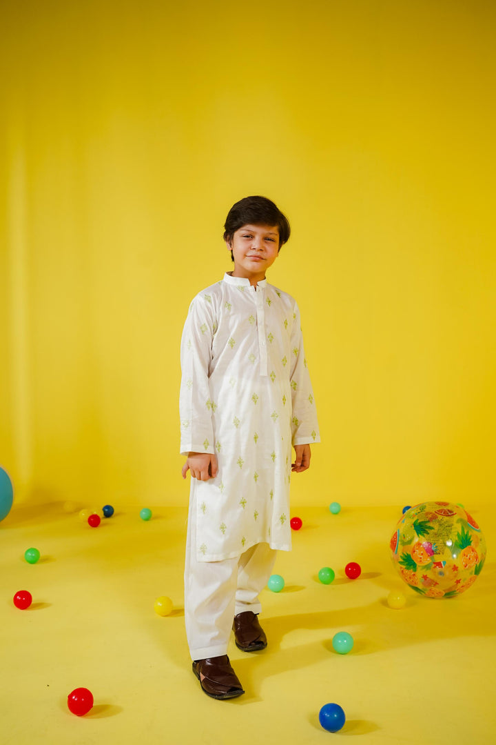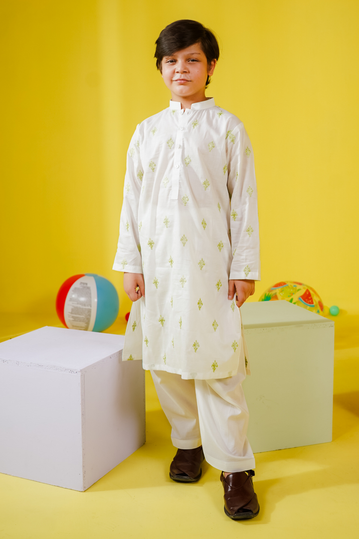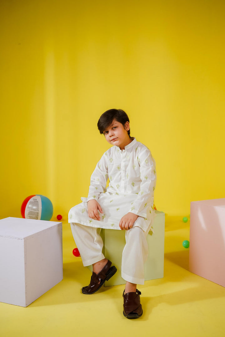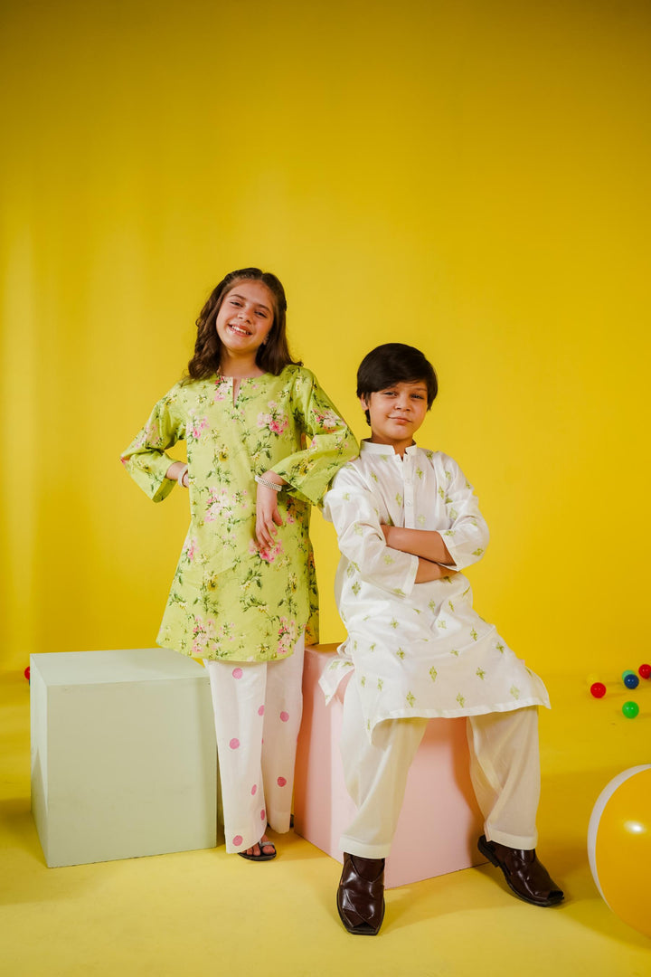The model is wearing our 9-10 years size. Please refer to the size chart for measurements.