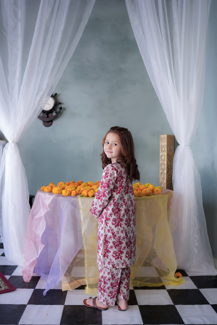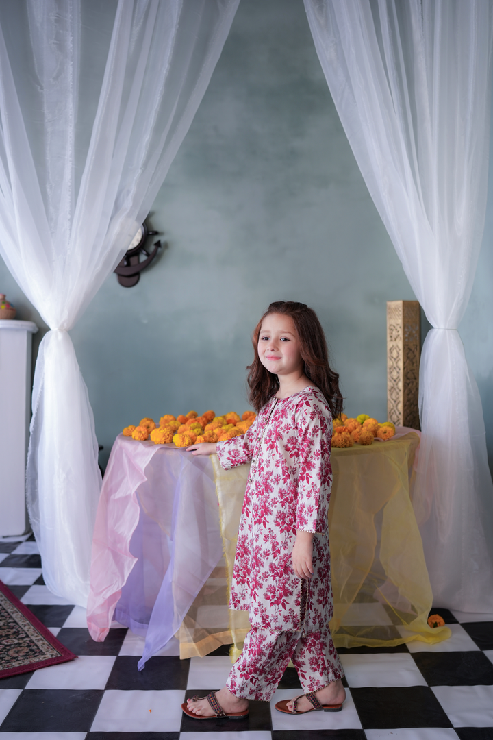 The model is wearing our 7-8 years size. Please refer to the size chart for measurements.