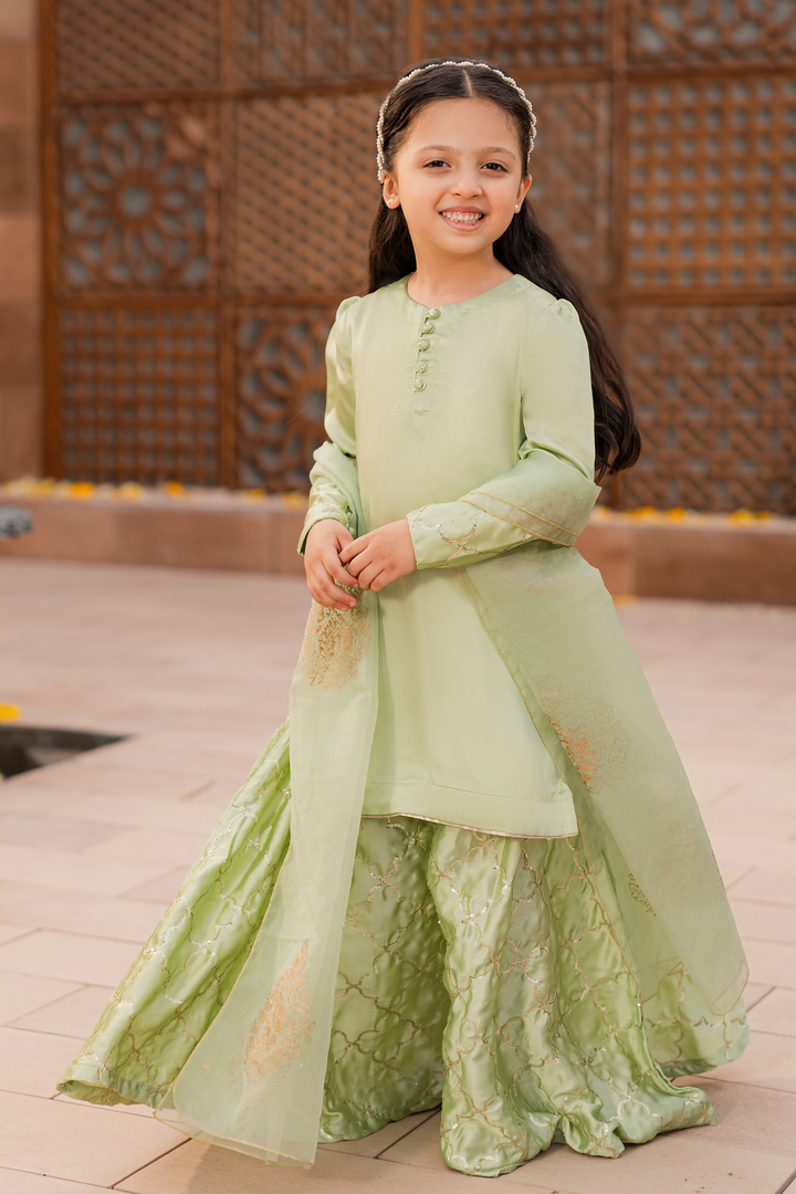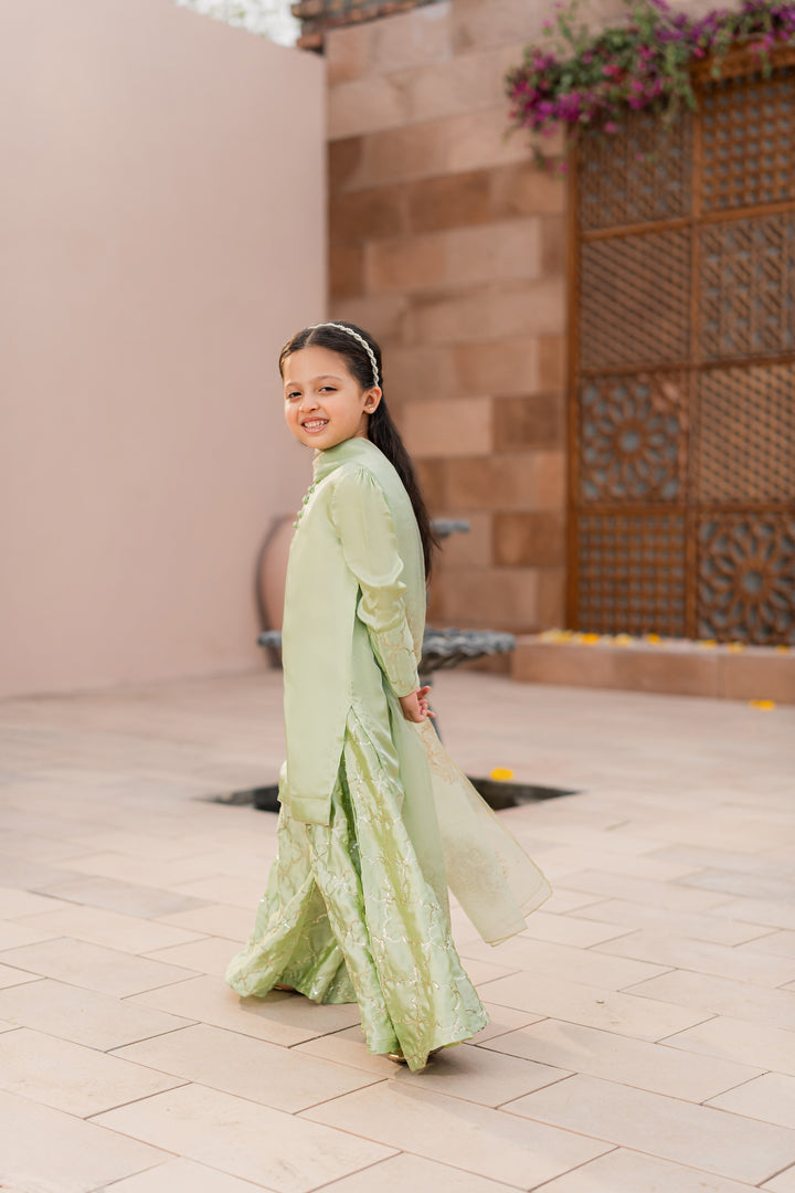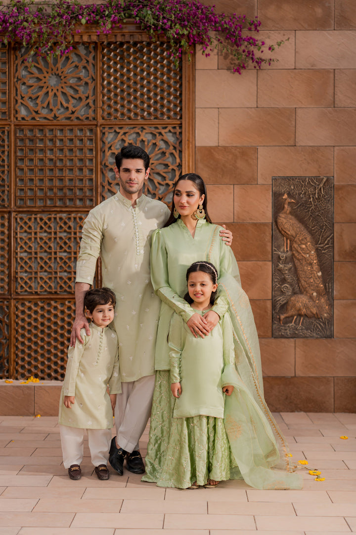 The model is wearing our 5-6 years size. Please refer to the size chart for measurements.