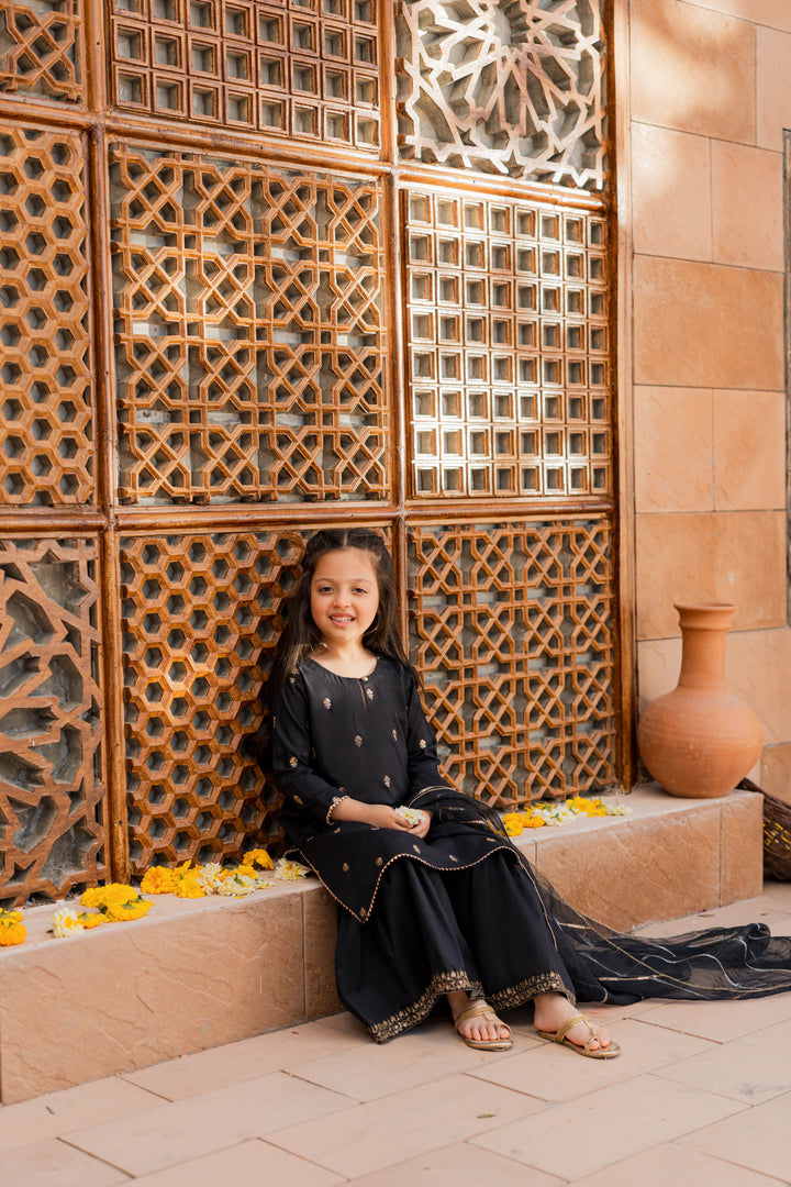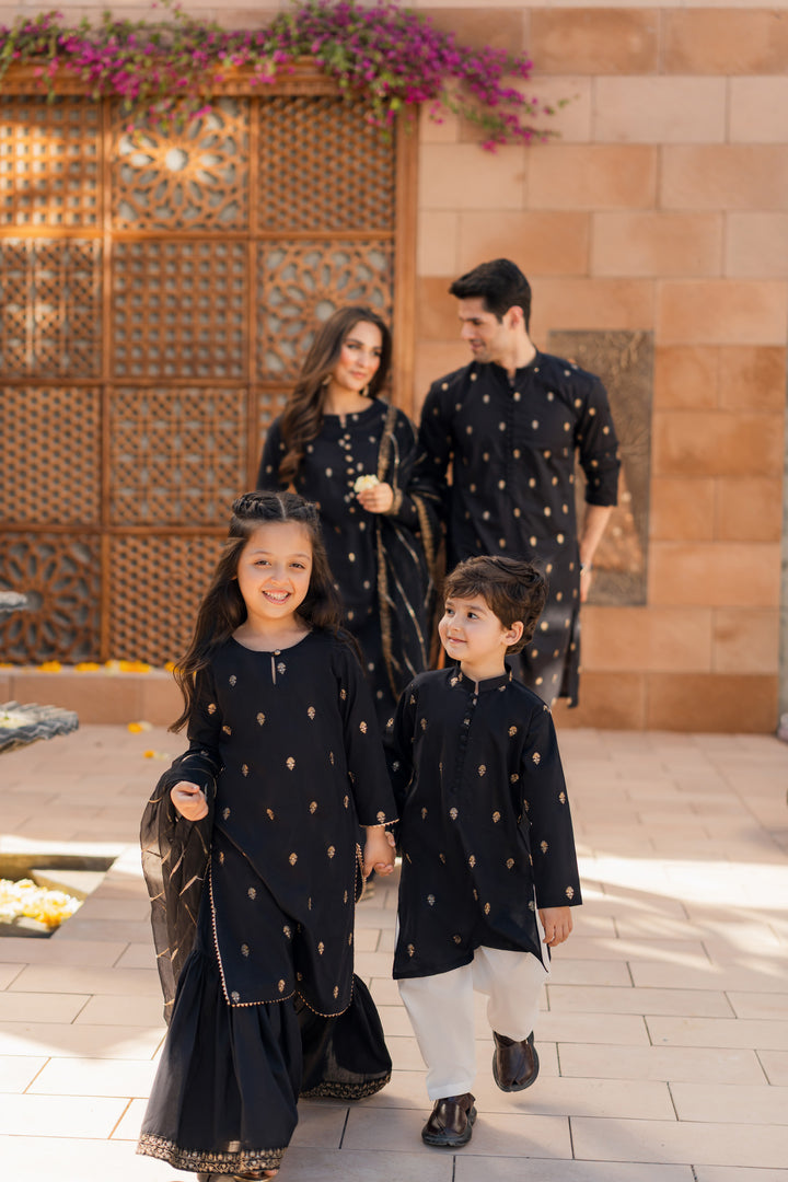 The model is wearing our 5-6 years size. Please refer to the size chart for measurements.