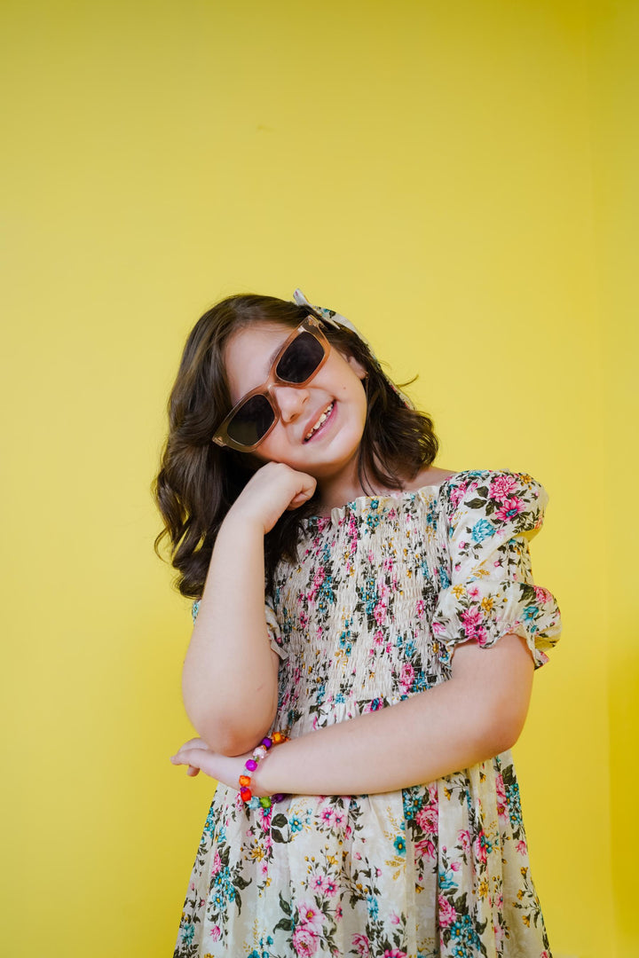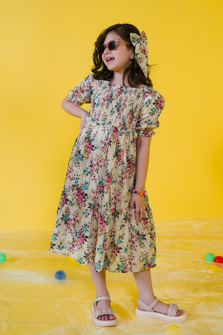 The model is wearing our 7-8 yrs size. Please refer to the size chart for measurements.