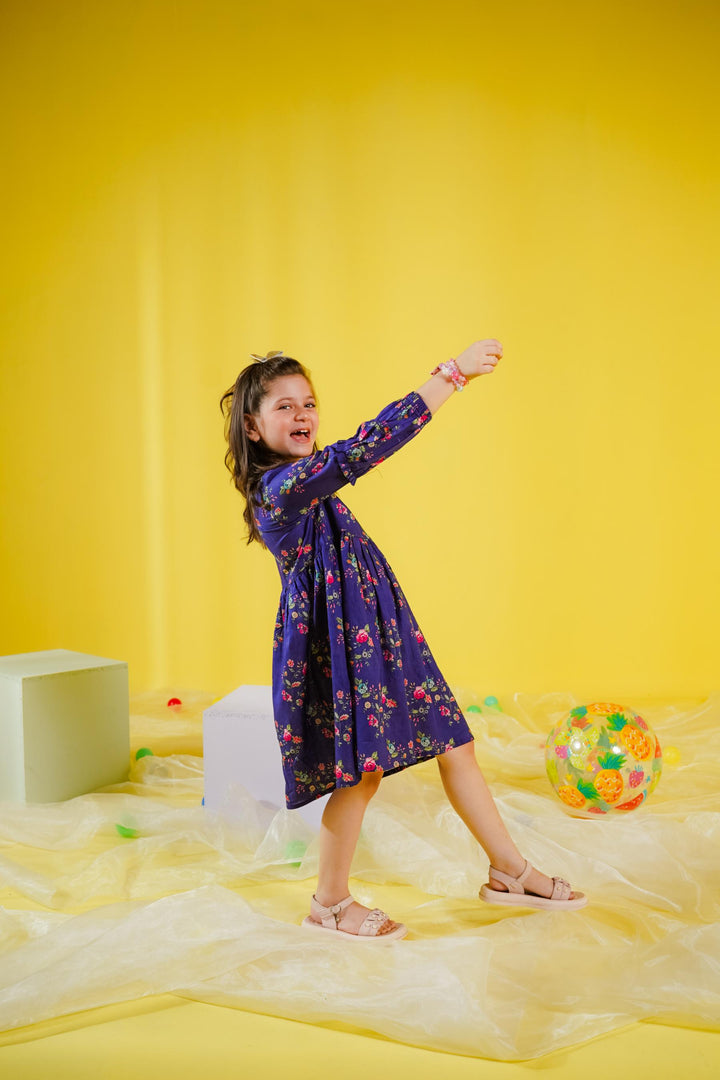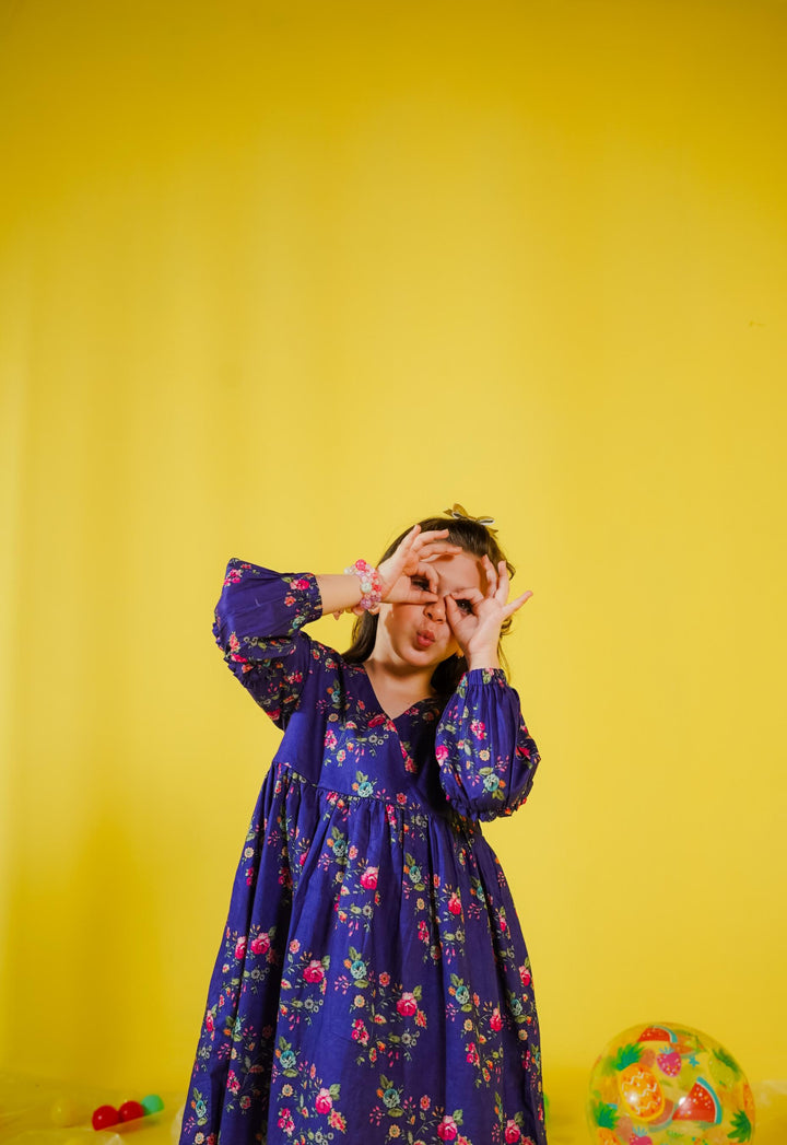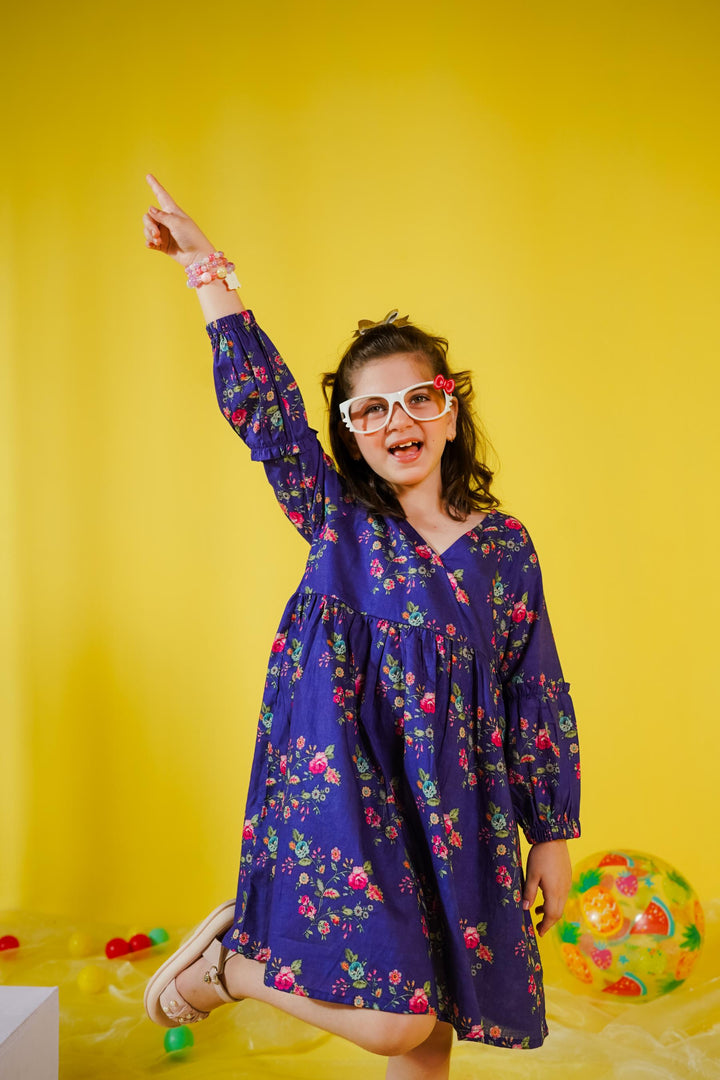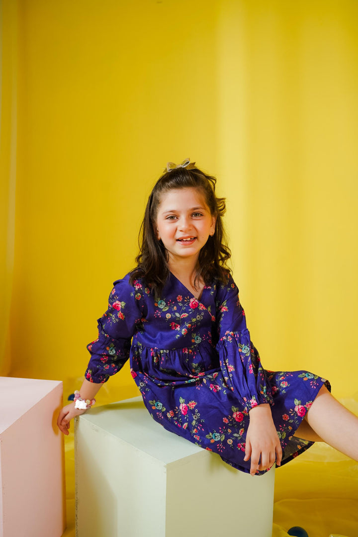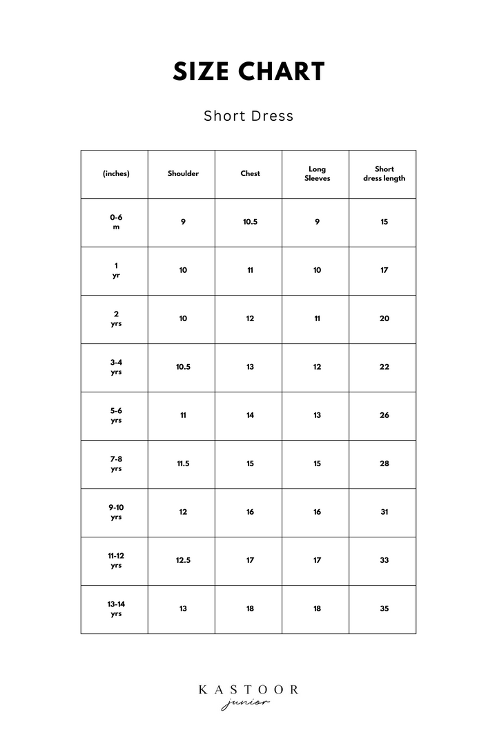 The model is wearing our 7-8 yrs size. Please refer to the size chart for measurements.