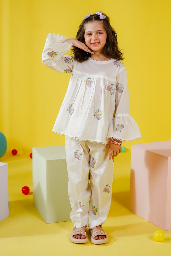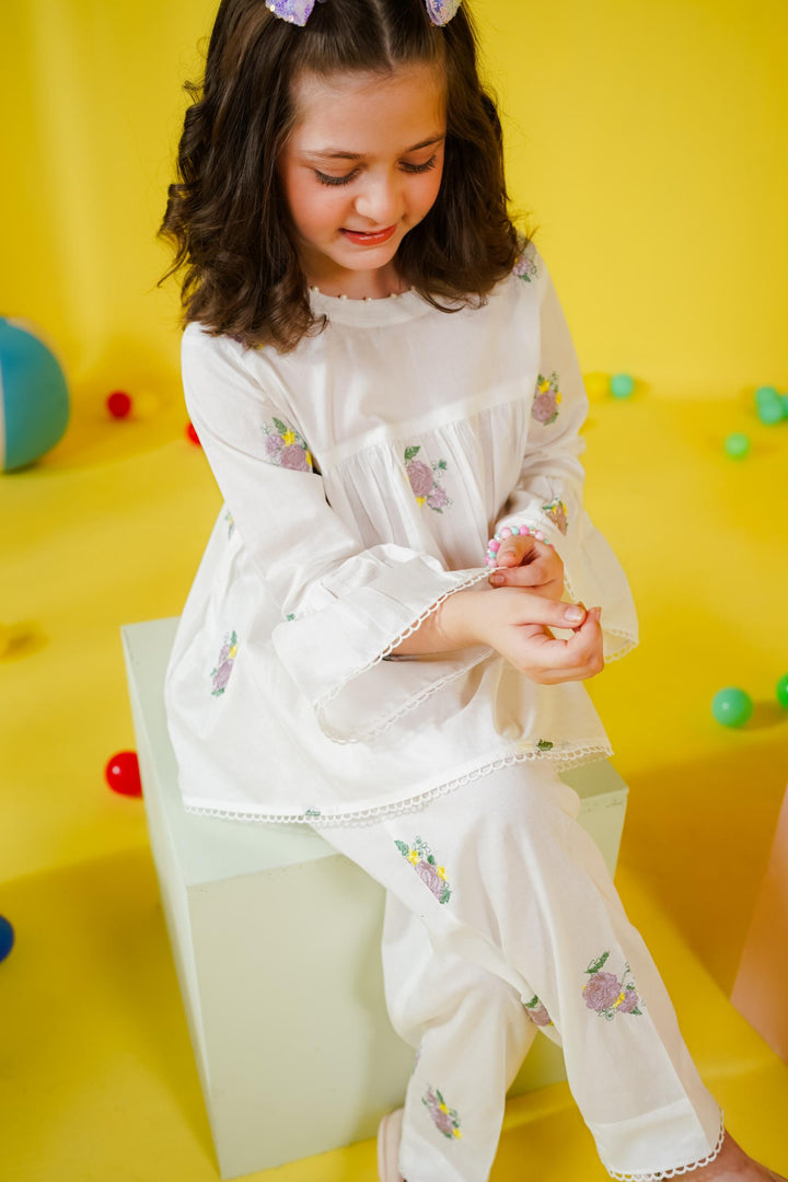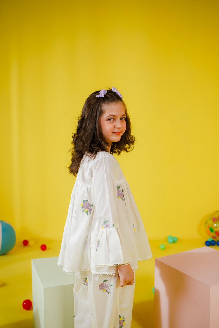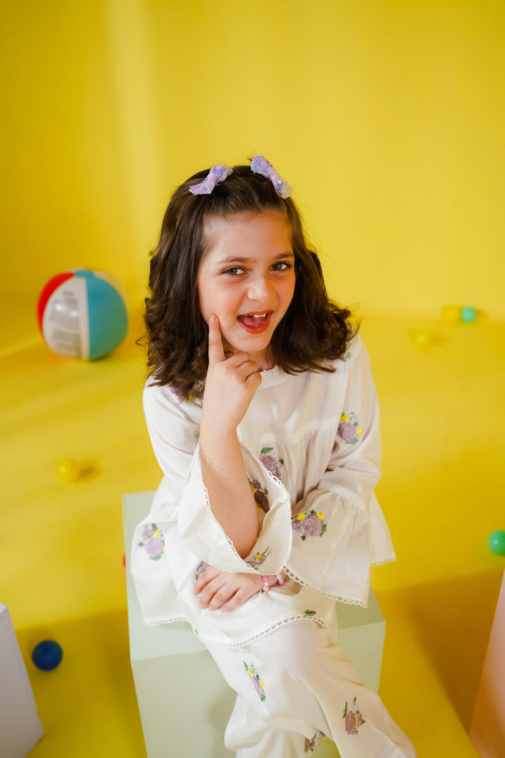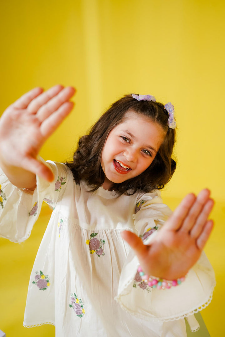 The model is wearing our 7-8 years size. Please refer to the size chart for measurements.