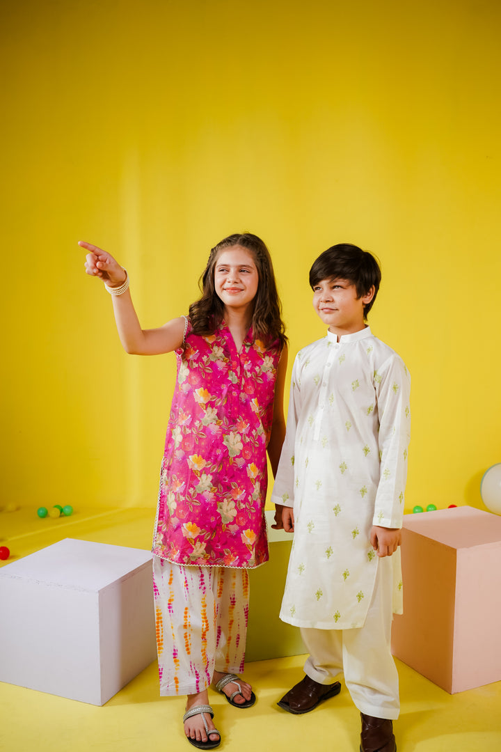 The model is wearing our 9-10 years size. Please refer to the size chart for measurements.