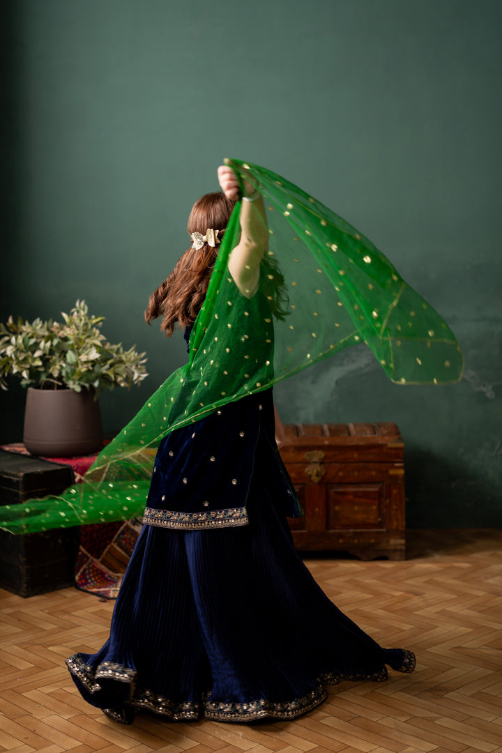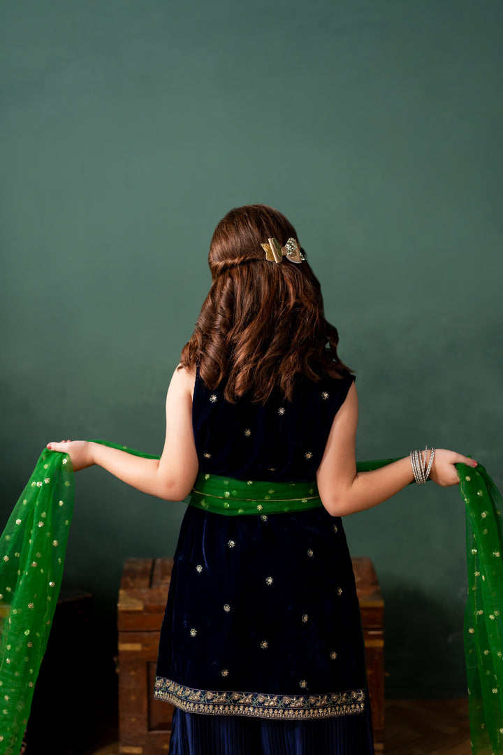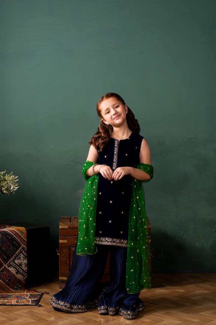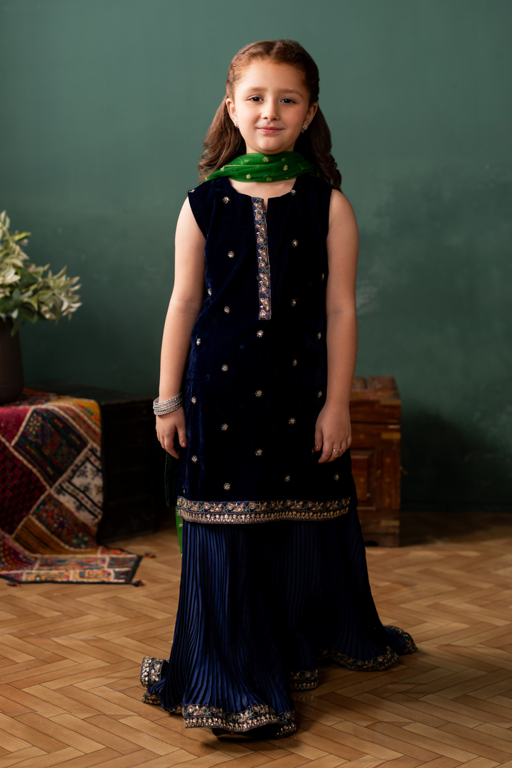The model is wearing our 7-8 years size. Please refer to the size chart for measurements.