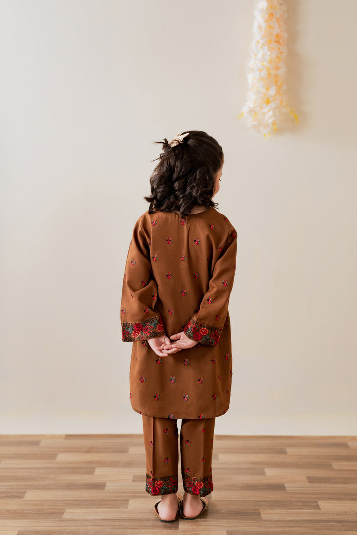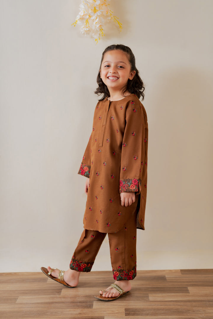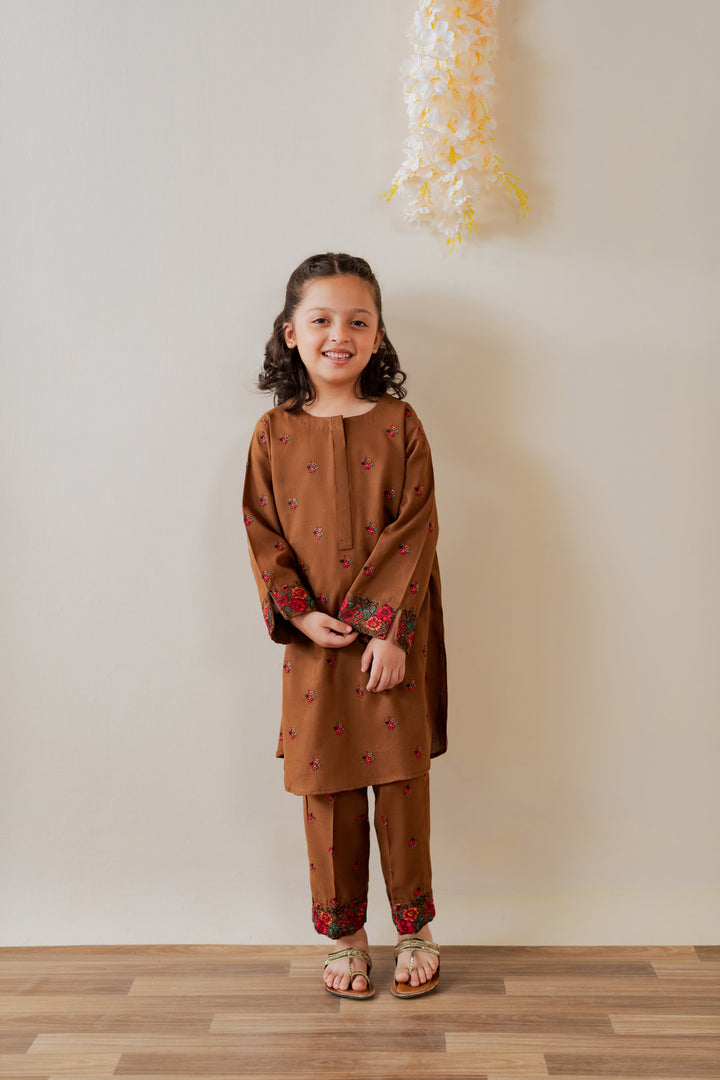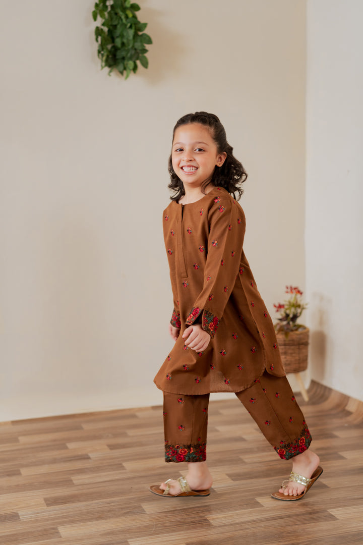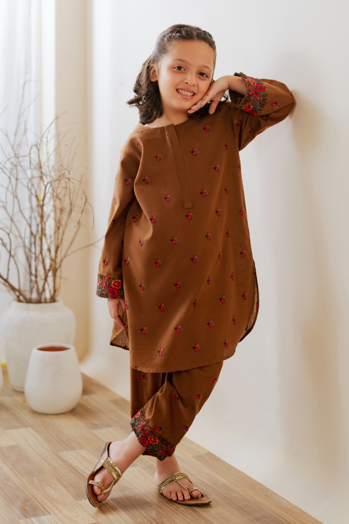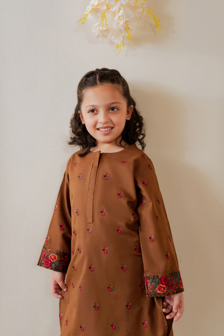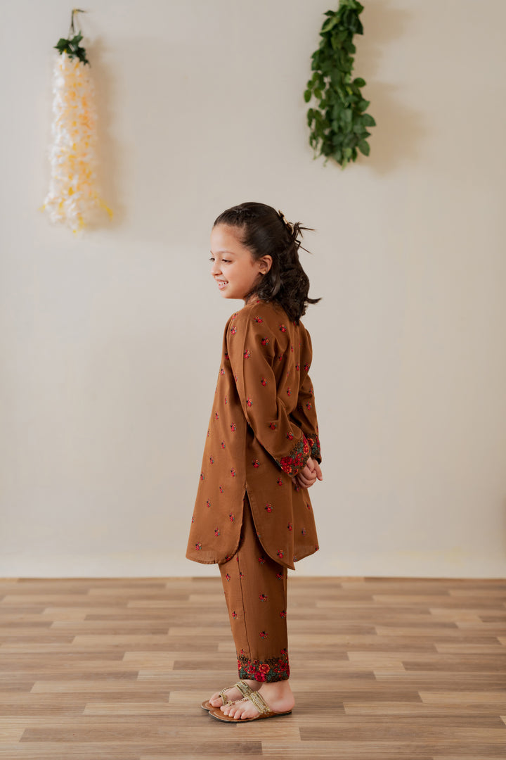 The model is wearing our 7-8 years size. Please refer to the size chart for measurements.