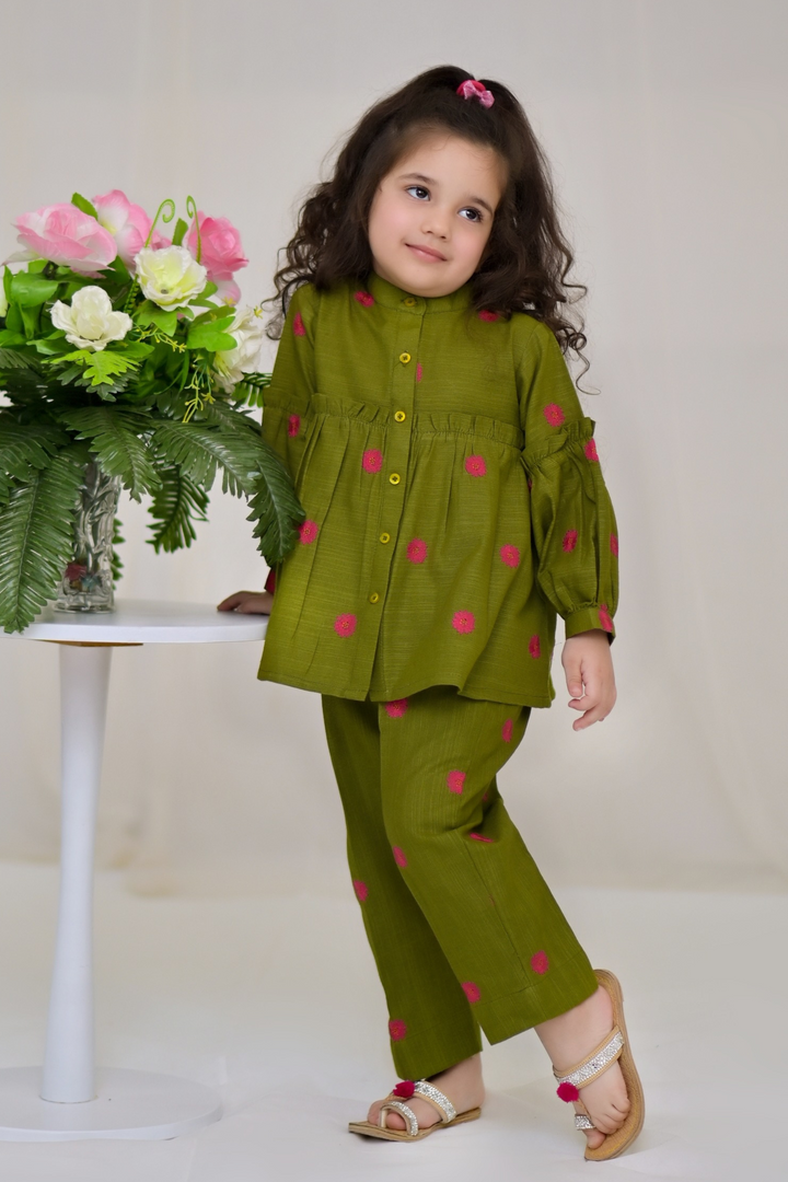 The model is wearing our 3-4 years size. Please refer to the size chart for measurements.