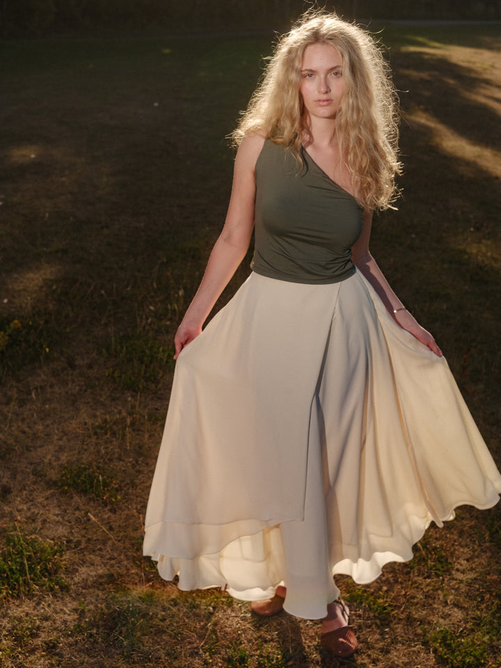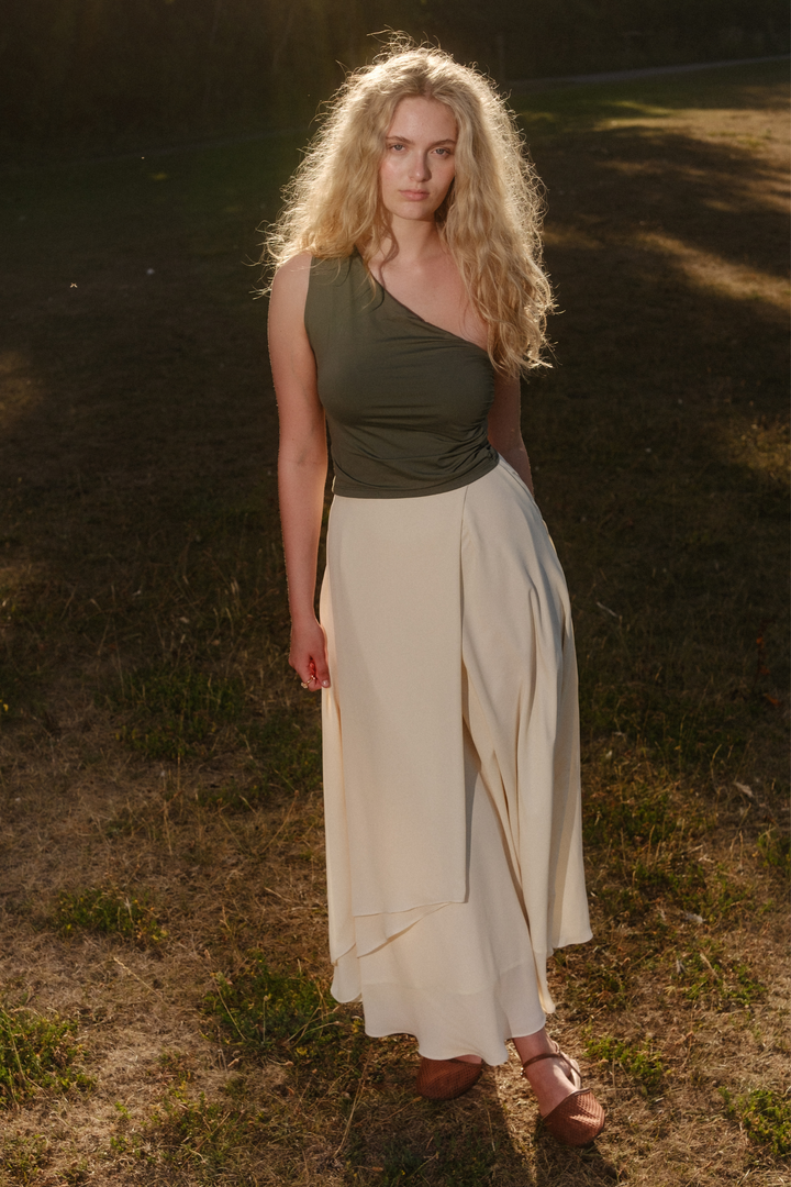 The model height is 5’ 10” and wearing our XS size. Please refer to the size chart for measurements.