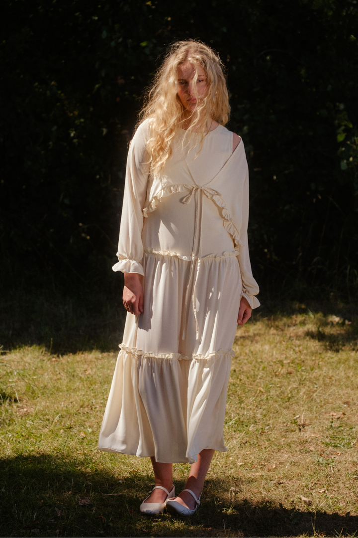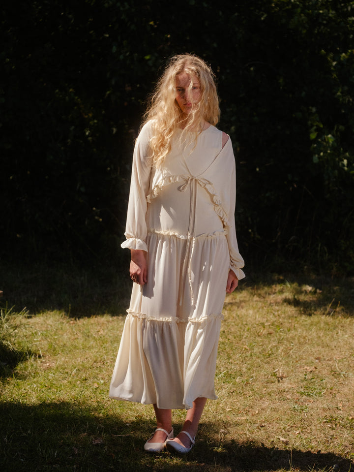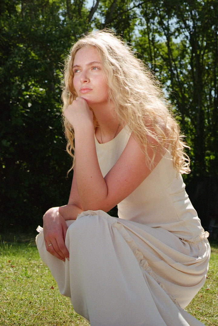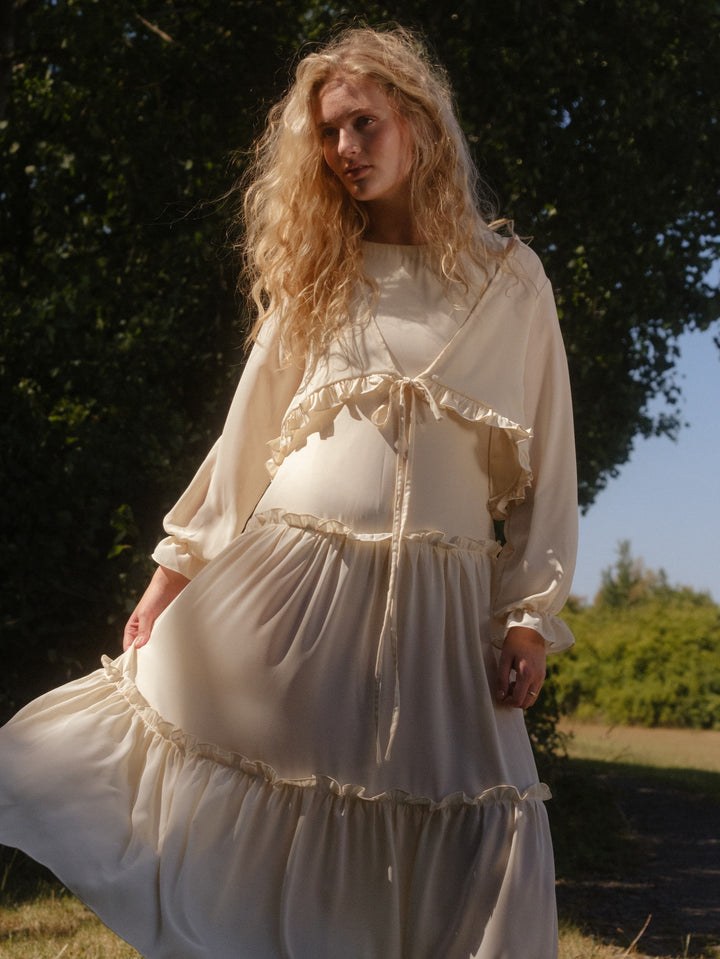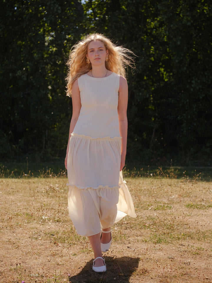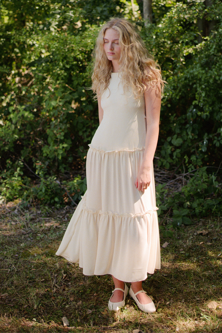 Two-piece set: sleeveless maxi dress with a short over-cardigan. Lining attached for coverage.