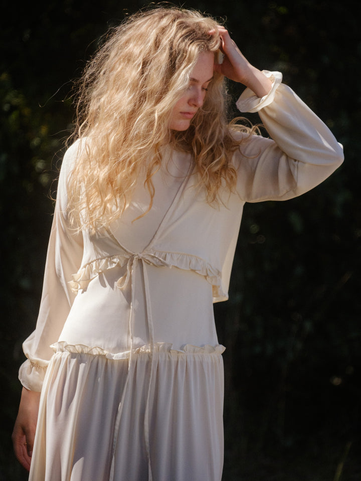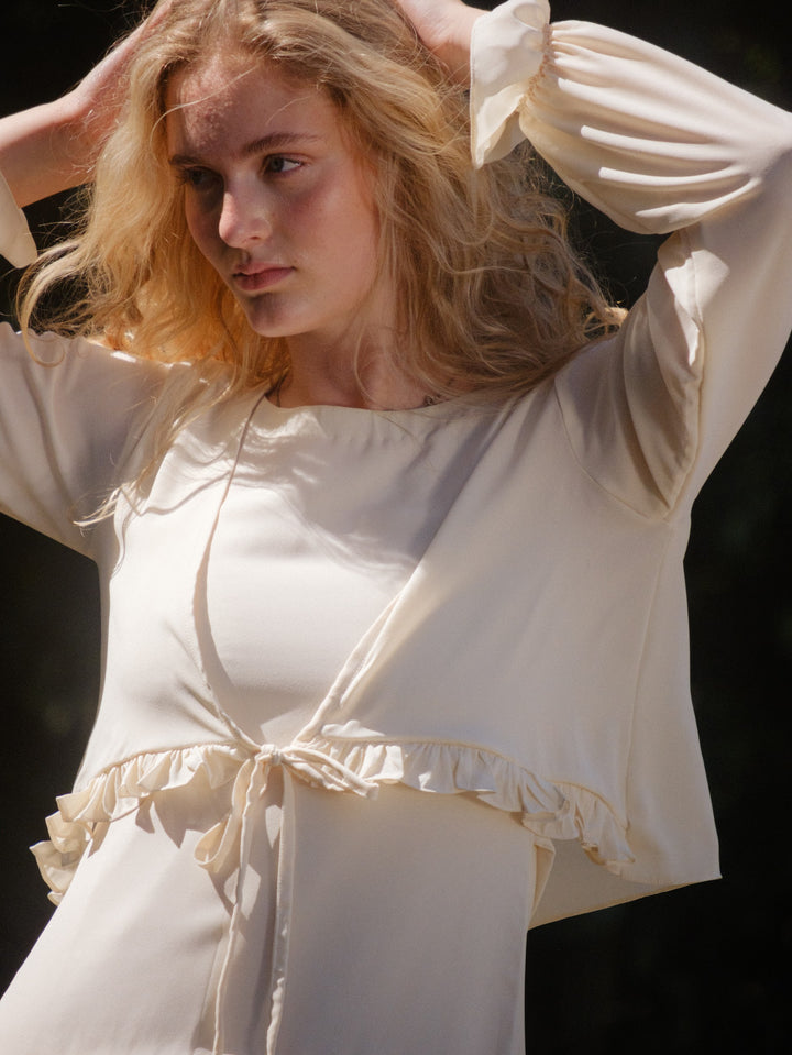 The model height is 5’ 10” and wearing our XS size. Please refer to the size chart for measurements.