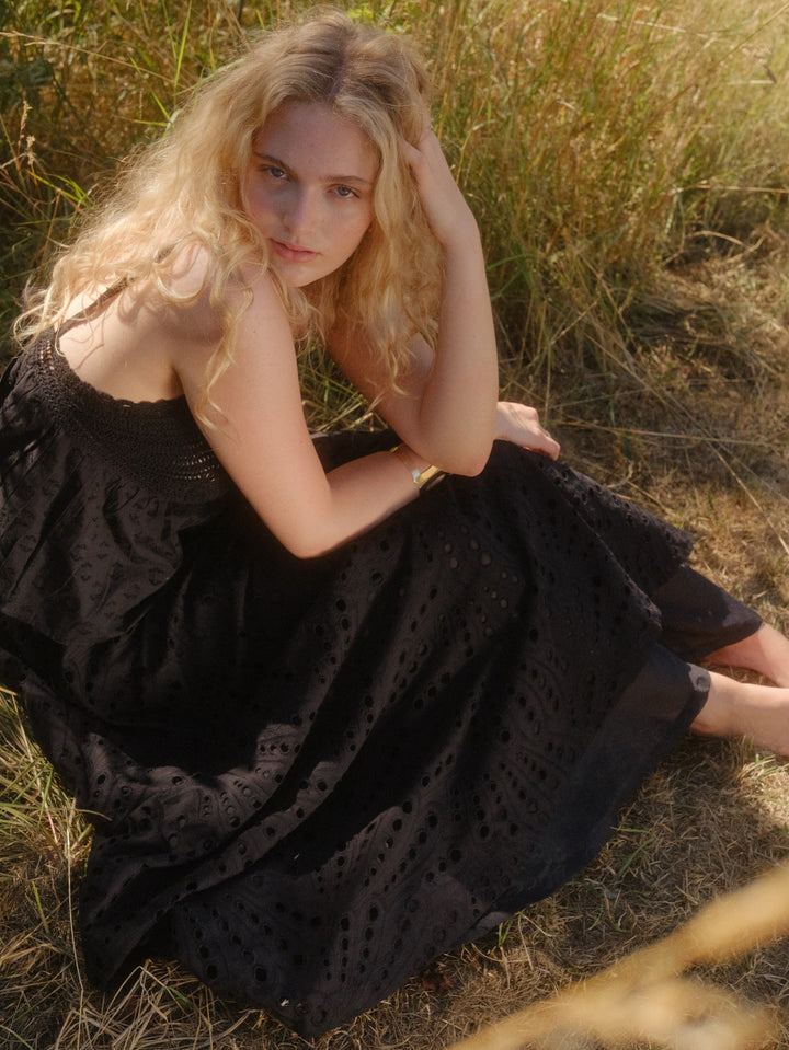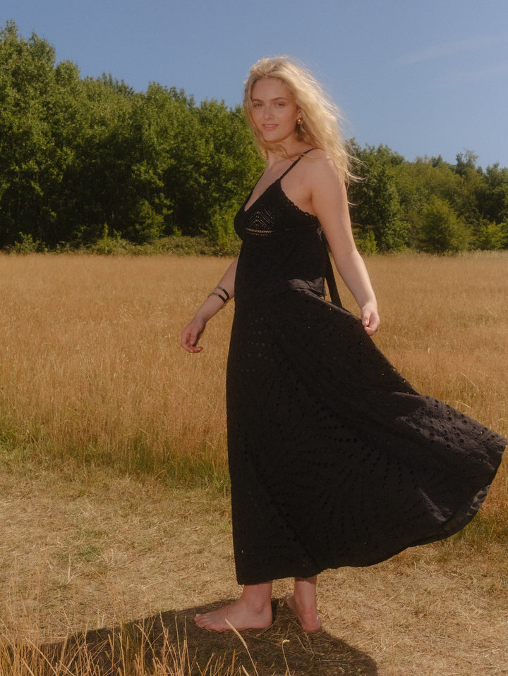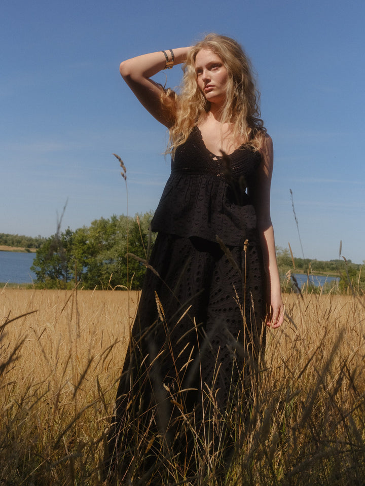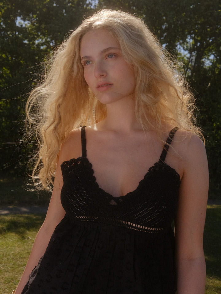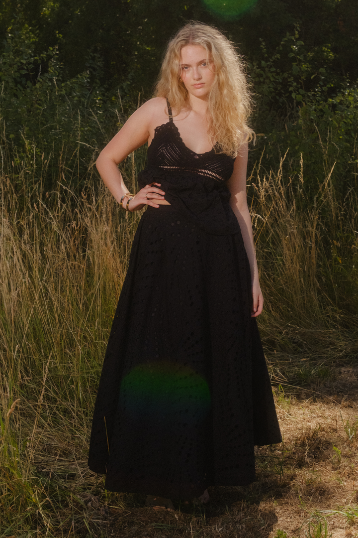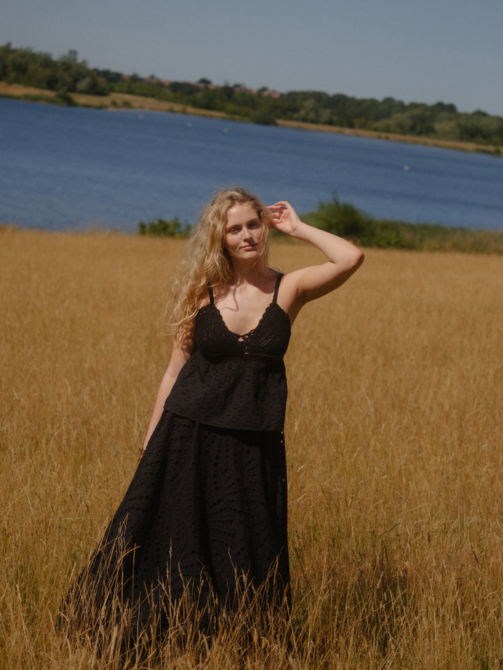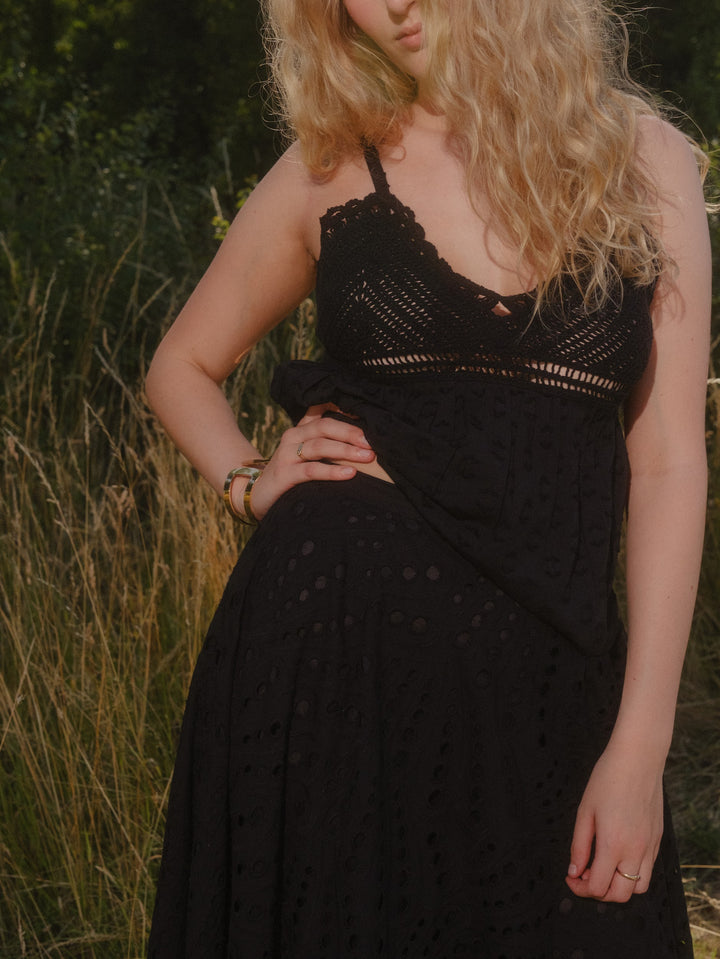 The model height is 5’ 10” and wearing our XS size. Please refer to the size chart for measurements.