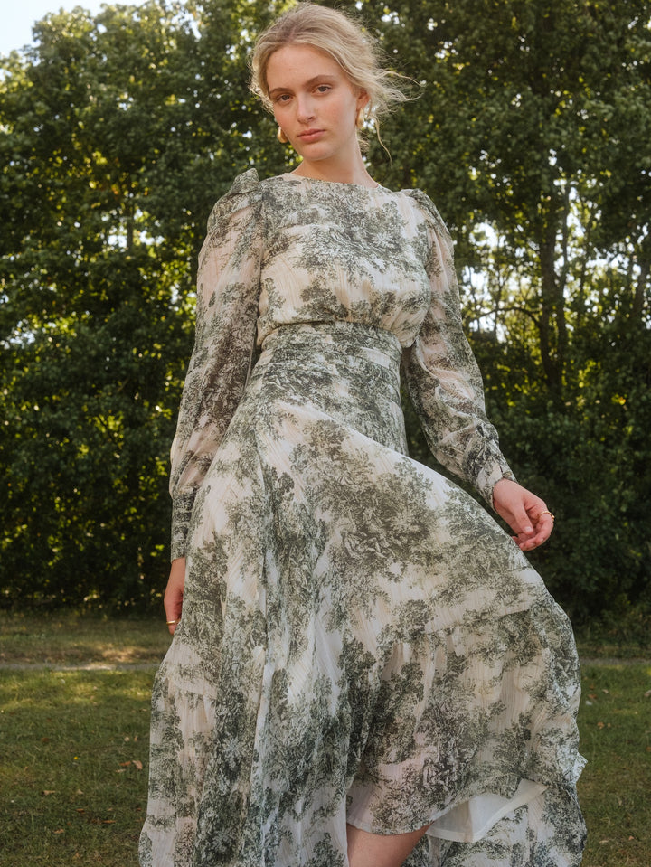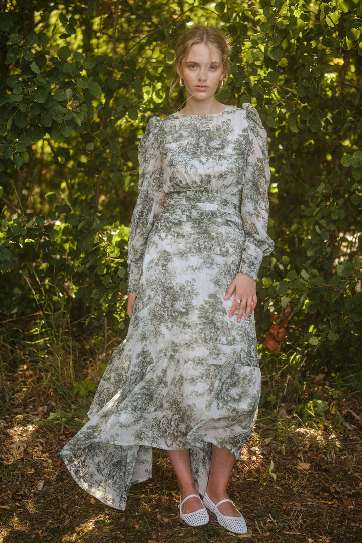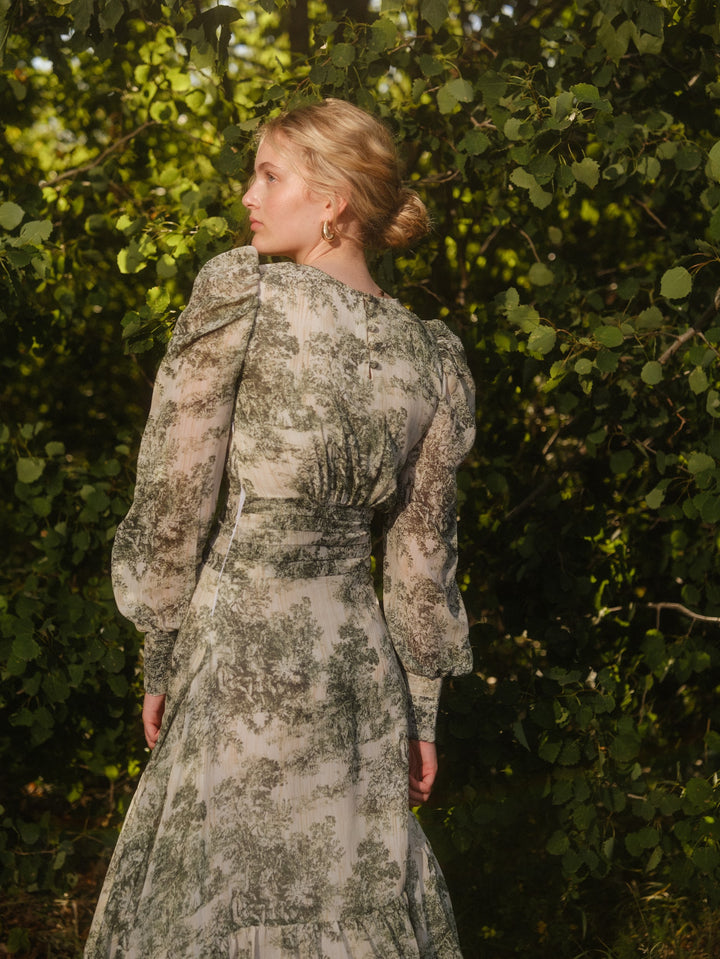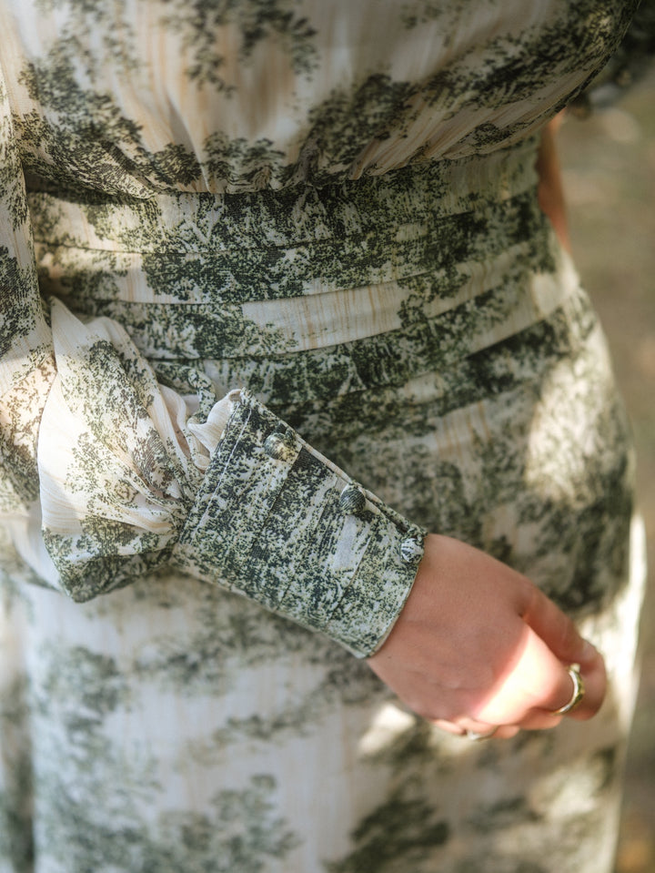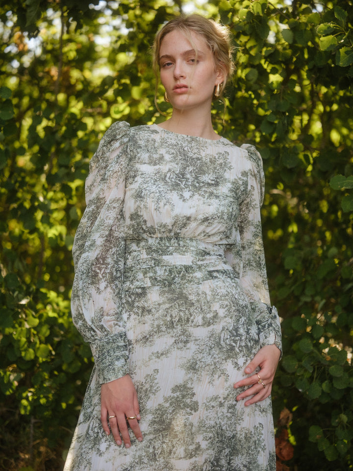 Subtle green foliage print on an off-white base for a natural, vintage look