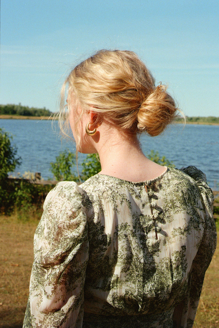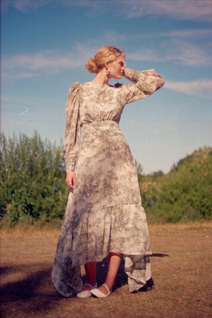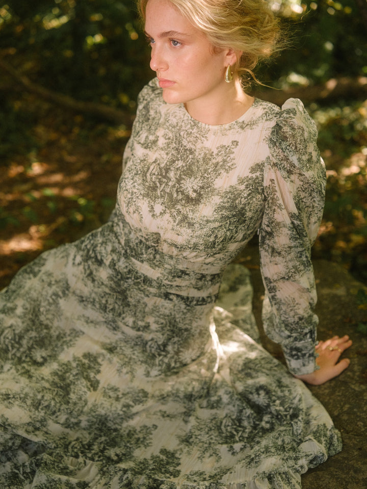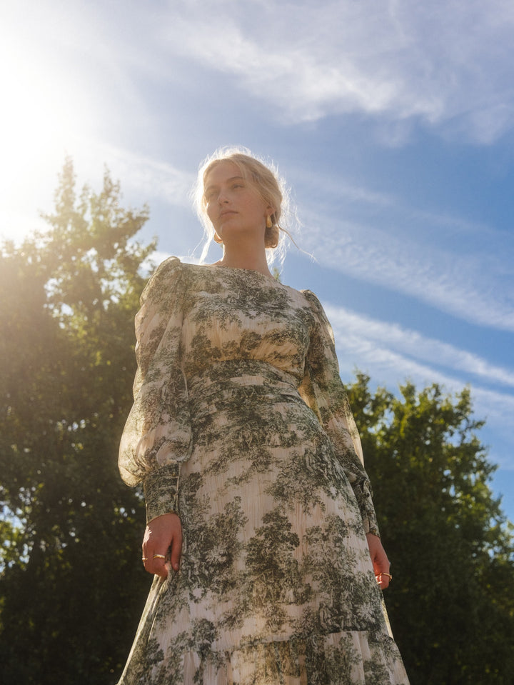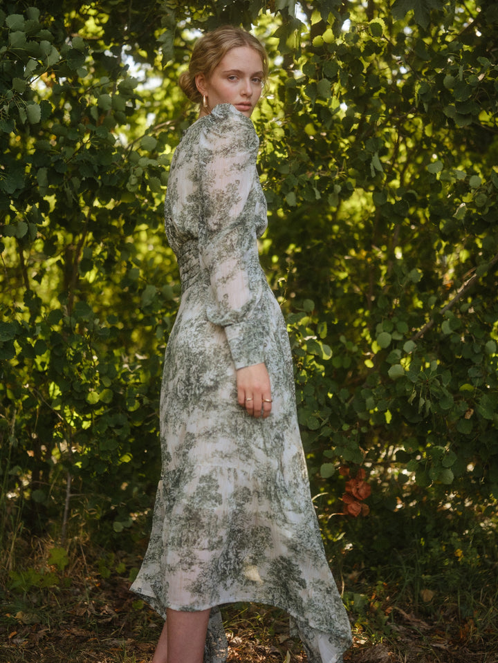 Subtle green foliage print on an off-white base for a natural, vintage look