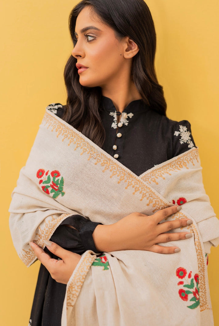 Hand-block printed khaddar shawl